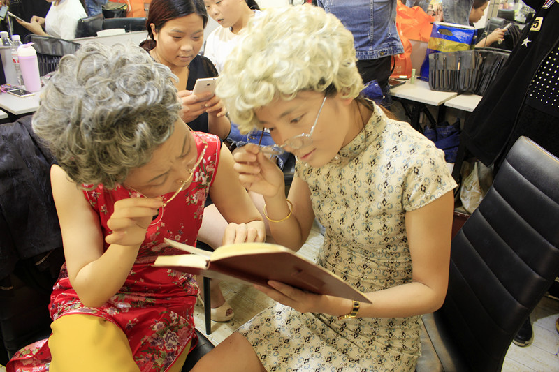 溫州樂清陽洋時尚化妝培訓(xùn)學(xué)校的學(xué)生們,近日被同學(xué)化了一個“老人妝“,瞬間變成了一位80歲老奶奶。