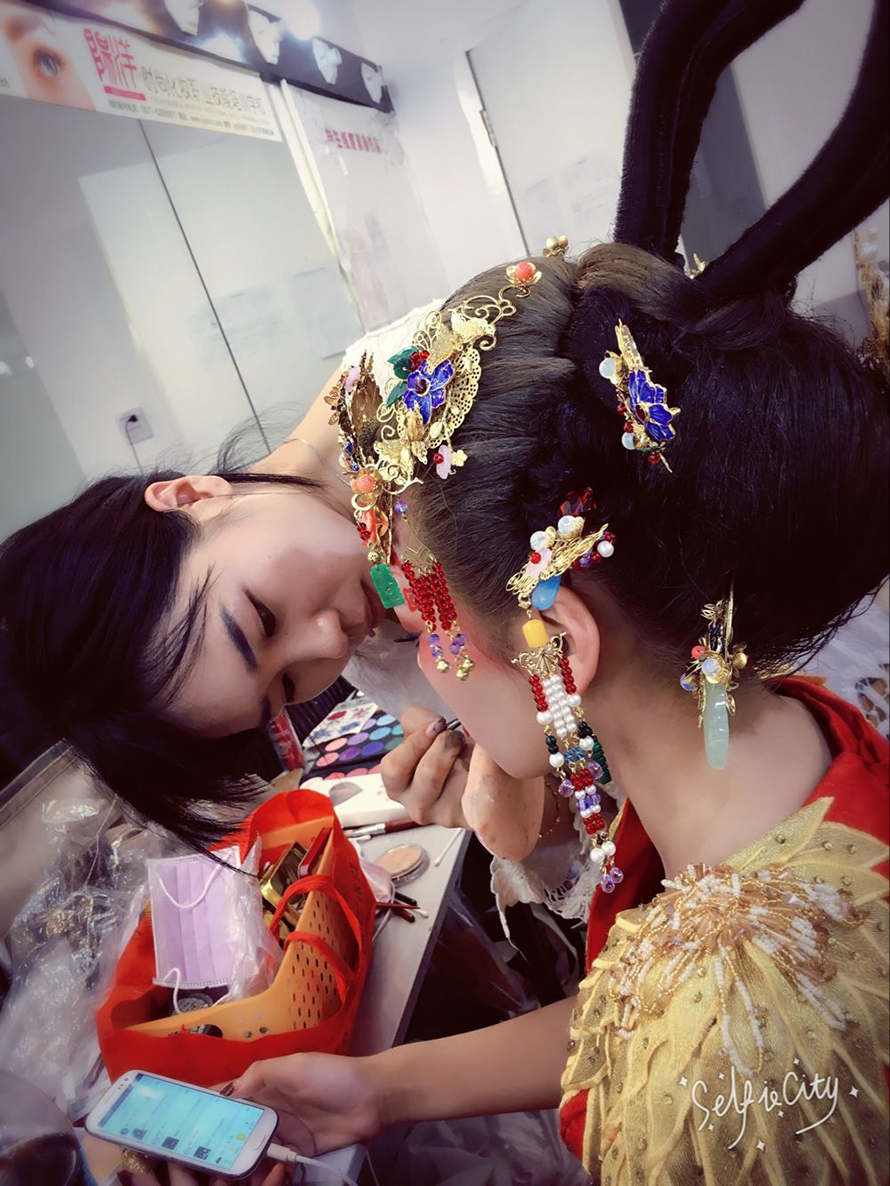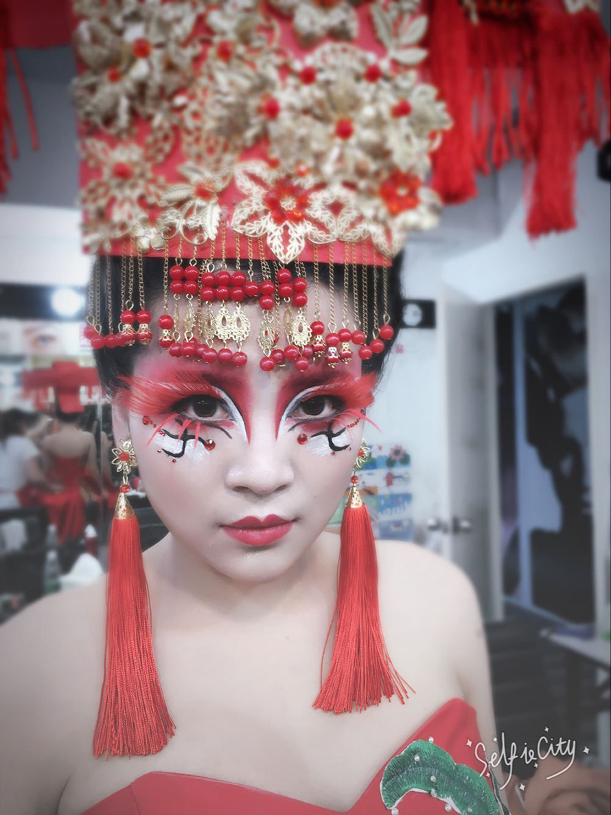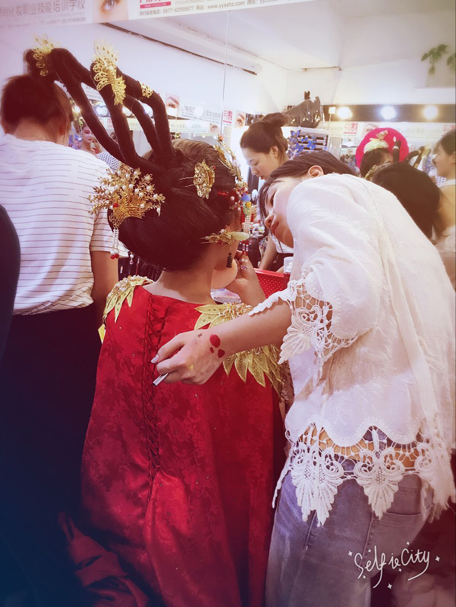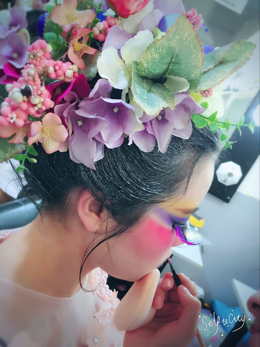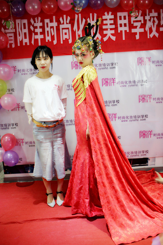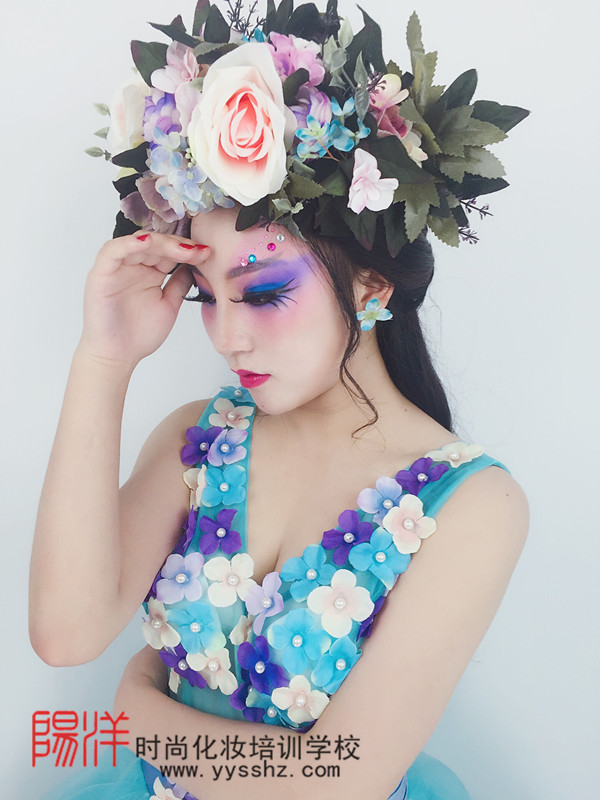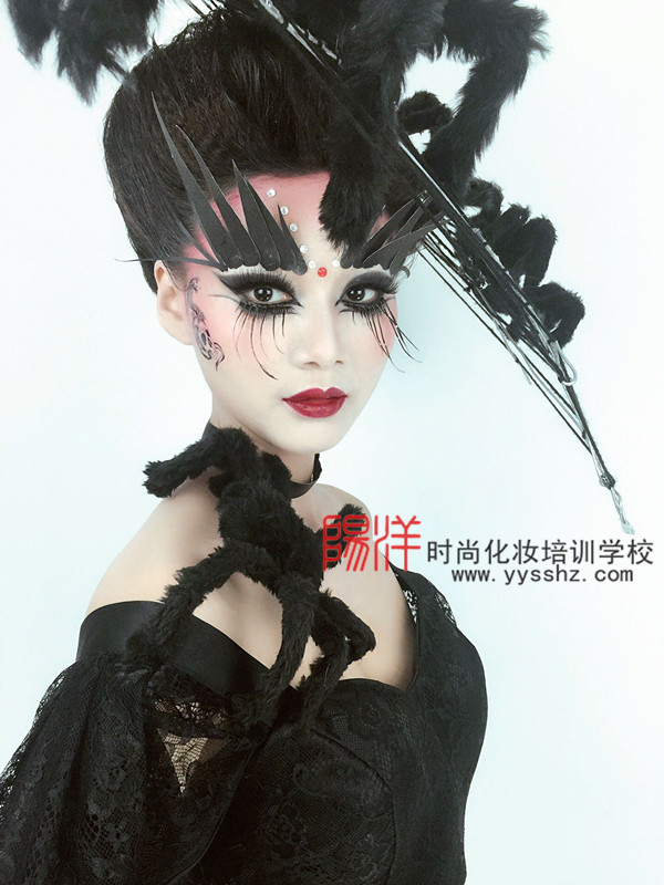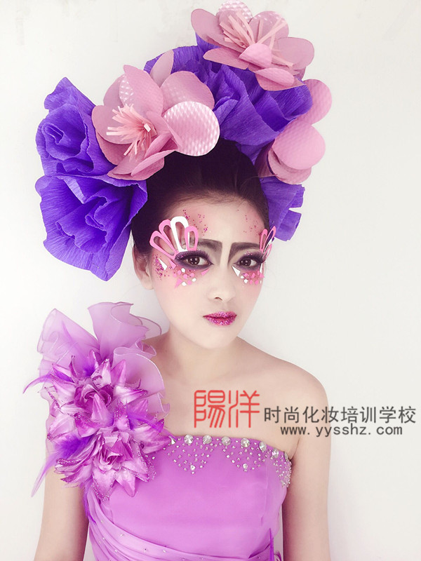 是不是很有范兒,很美呢?下面跟著陽洋化妝小編來看看這些美麗的妝容造型是怎么打造出來的吧! 樂清陽洋化妝學(xué)校學(xué)生作品,從頭飾到服裝都是學(xué)生親自設(shè)計純手工diy的