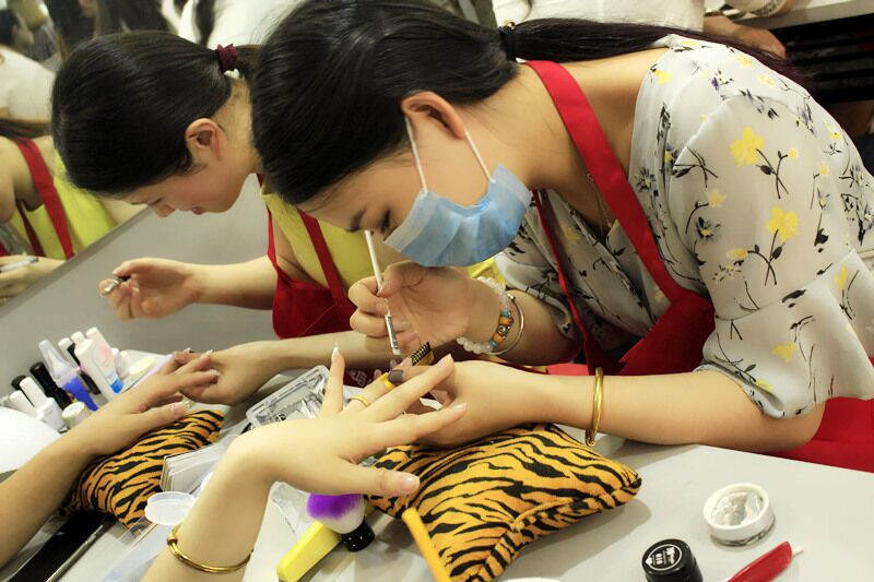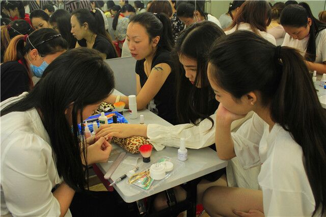 今天是樂清陽洋化妝美甲培訓學校學員的月考 陽洋學校定期會舉行階段性的考試 這是督促老師檢驗學員的學習情況 及時根據(jù)學員學習進度 制定針對性教學 也是學員對上一階段學校成果展示 向美甲專業(yè)同學學習,互相取長補短