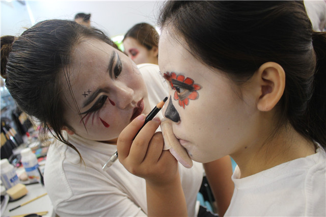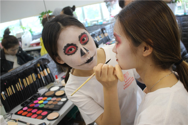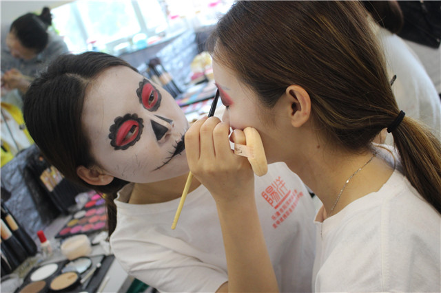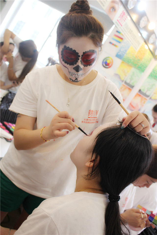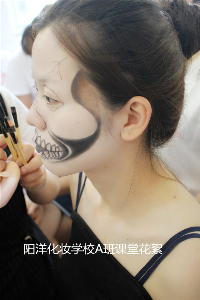 當(dāng)前位置:樂(lè)清市陽(yáng)洋職業(yè)技能培訓(xùn)學(xué)校 » 學(xué)生課堂陽(yáng)洋化妝高彩班,骷髏妝(前方高能,膽小鬼勿點(diǎn)哦~)發(fā)布時(shí)間:2018-7-7 9:34:13瀏覽次數(shù):1978 |