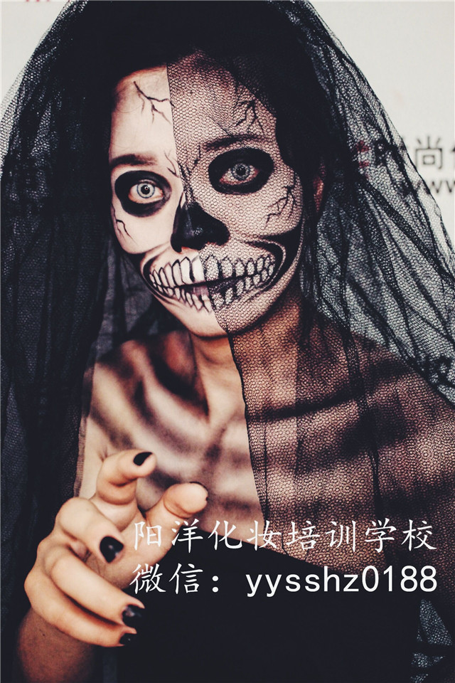 所謂骷髏妝,就是要求將臉部畫(huà)成骷髏的形狀。影視化妝中個(gè)性?shī)y的一種。因?yàn)楫?huà)這種妝需要對(duì)人的骨骼結(jié)構(gòu)有足夠的認(rèn)識(shí),所以被稱(chēng)為影視妝容的基礎(chǔ)課程。是成為優(yōu)秀化妝師的必修課