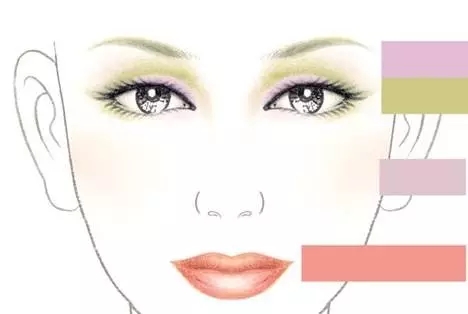 明度比淡色調(diào)略低,色相和鮮艷度比淡色調(diào)略為清晰,淺色調(diào)妝淡雅,親切、溫柔,適合職業(yè)妝和新娘白紗妝、當天妝。
