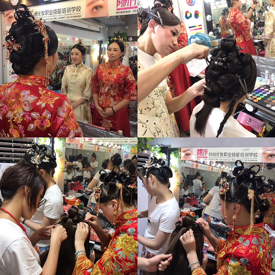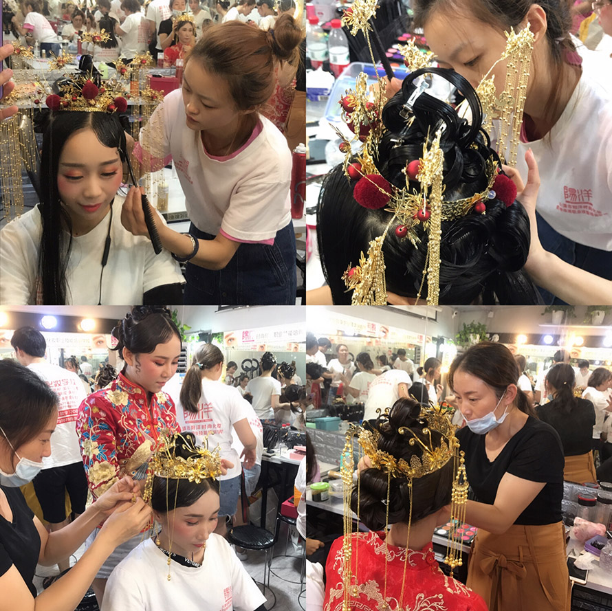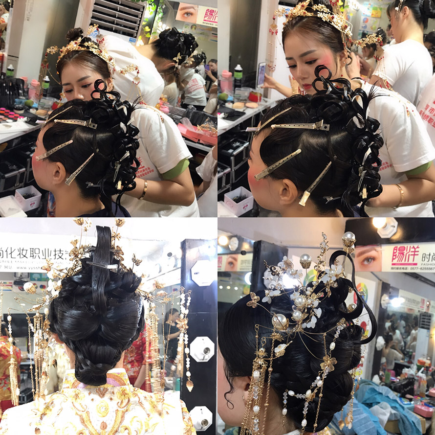 我們來看看同學(xué)們第一次做的中式新娘作品花絮吧