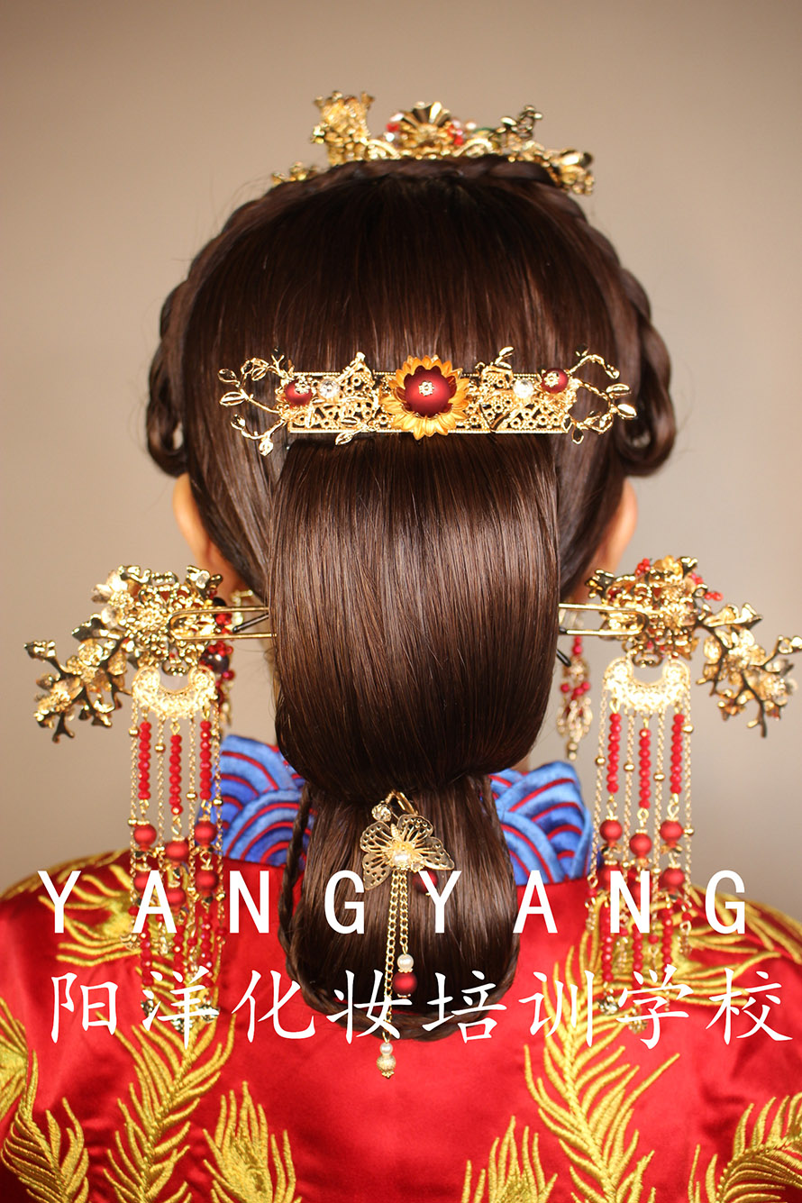 在老師的嚴(yán)格教學(xué)下,在同學(xué)們的努力學(xué)習(xí)后,第一次成功獨立完成了中式新娘整體造型。