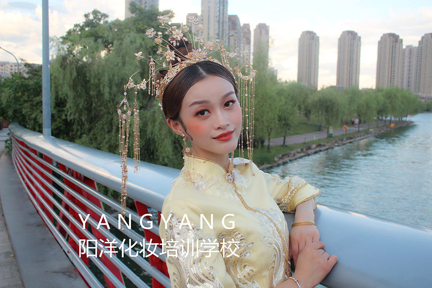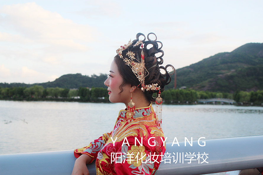 學(xué)習(xí)妝容加發(fā)型和服裝的整體造型,第三個月以新娘妝為主。