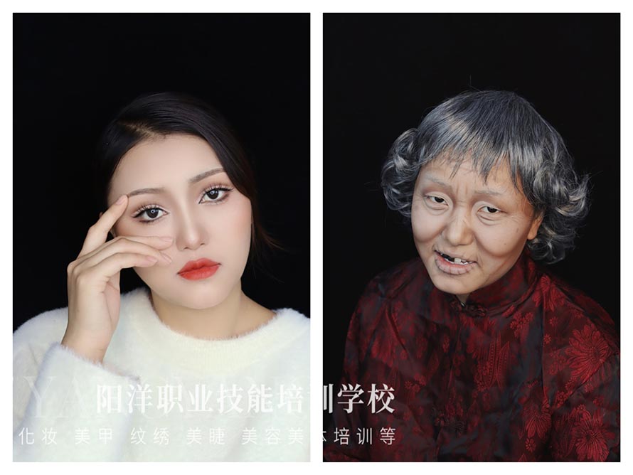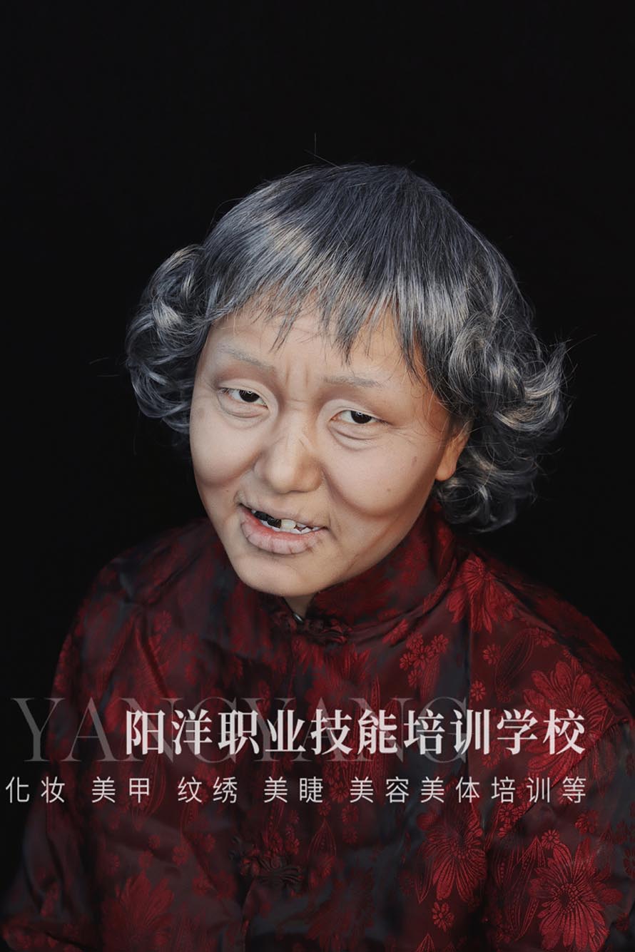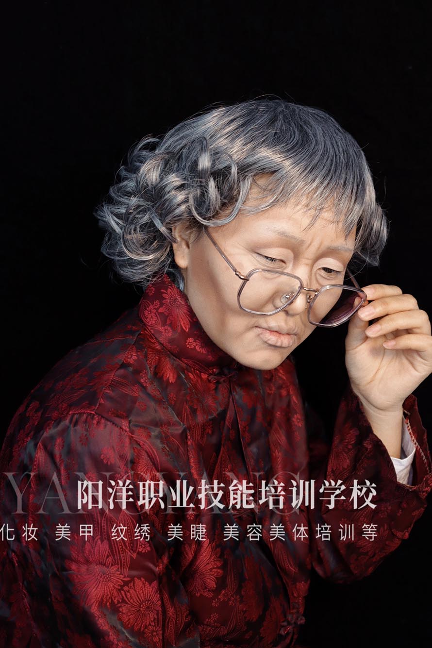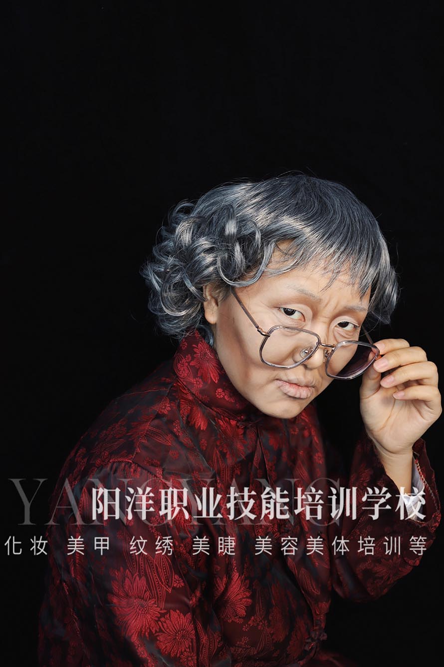 老年妝還可以用染白鬢角及頭發(fā),假發(fā)套、圍巾、帽子等老年裝飾。
