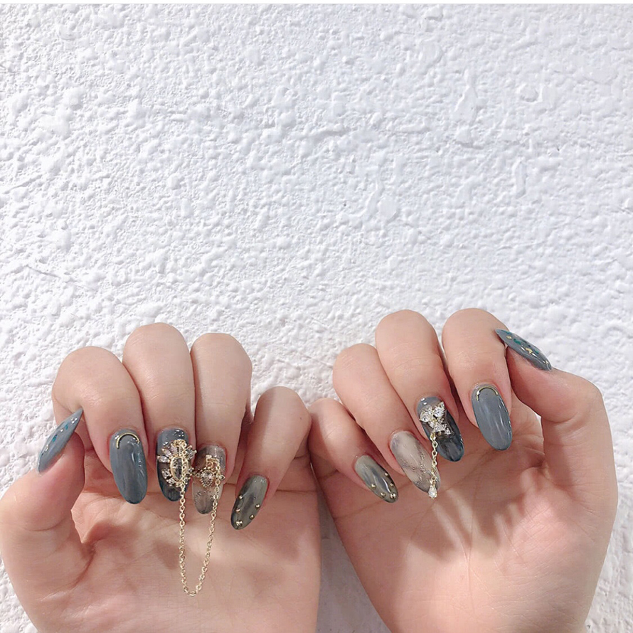 有些姑娘們走的就是奢華系列,純色調(diào)子的美甲對(duì)于她們來(lái)說(shuō)太過(guò)普通,必須要有鑲磚的bingbling美甲才夠勁!