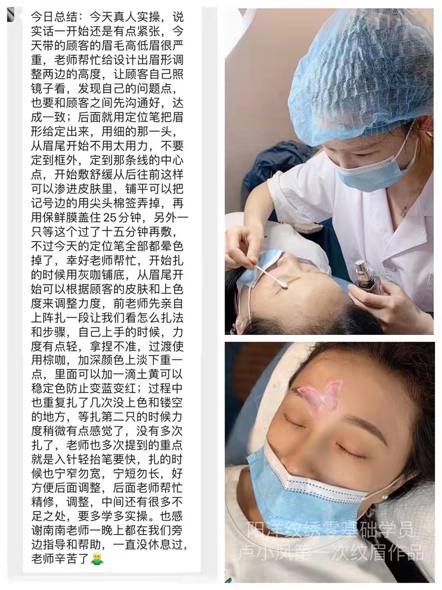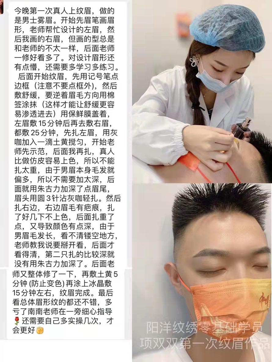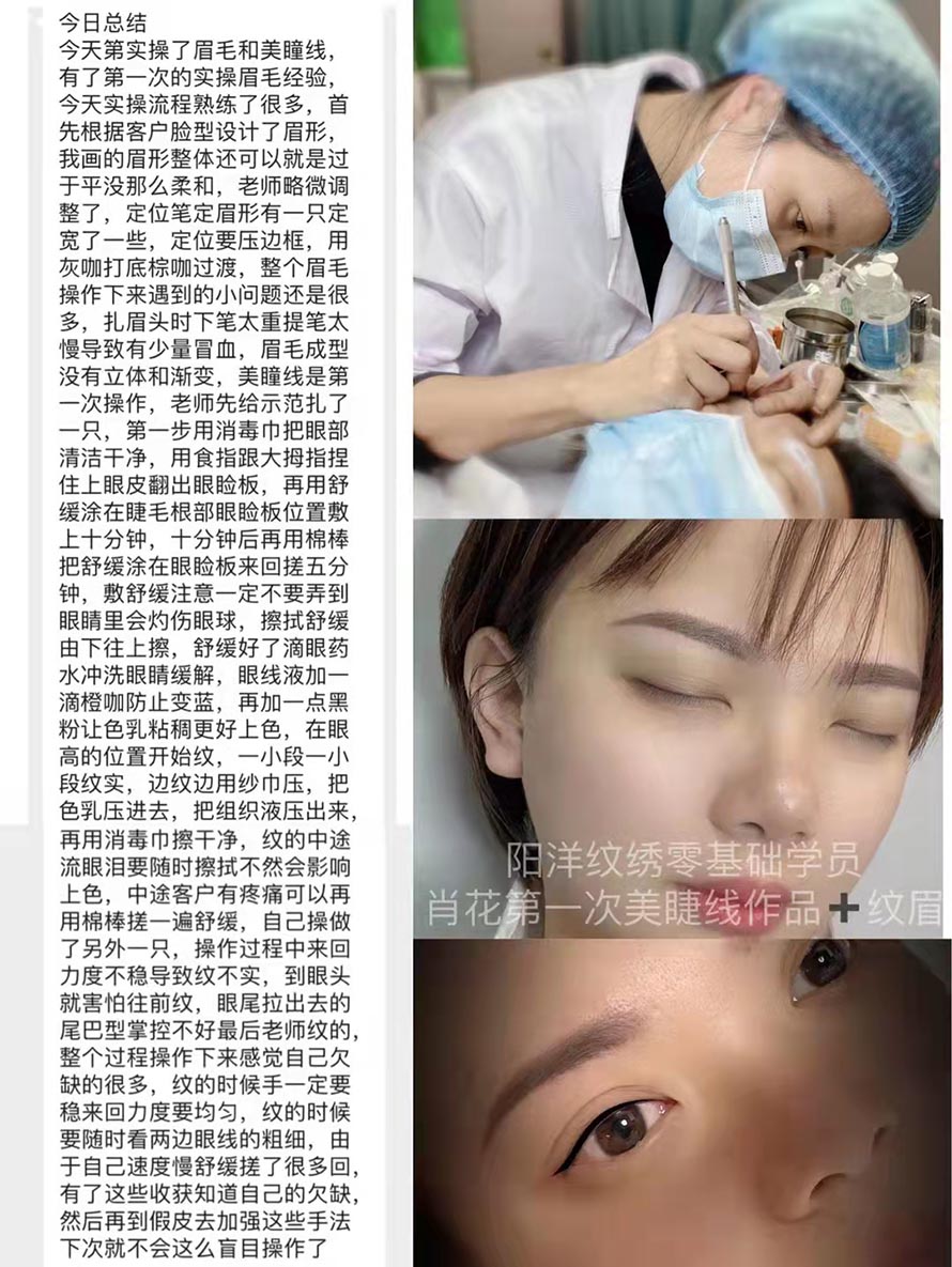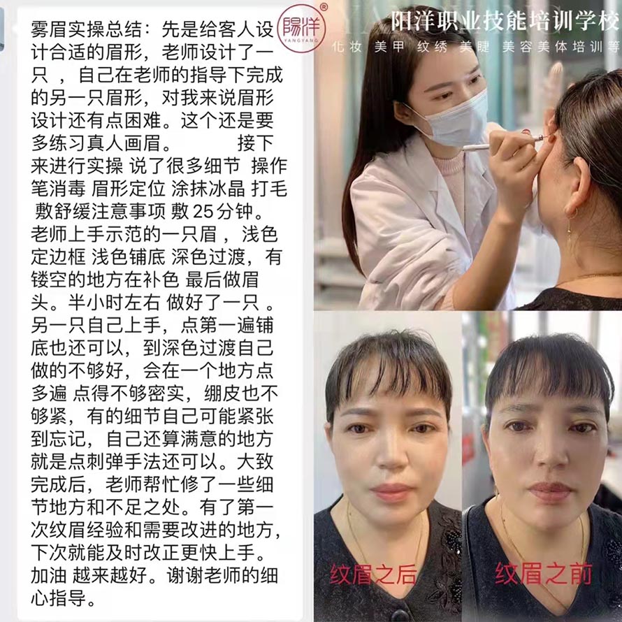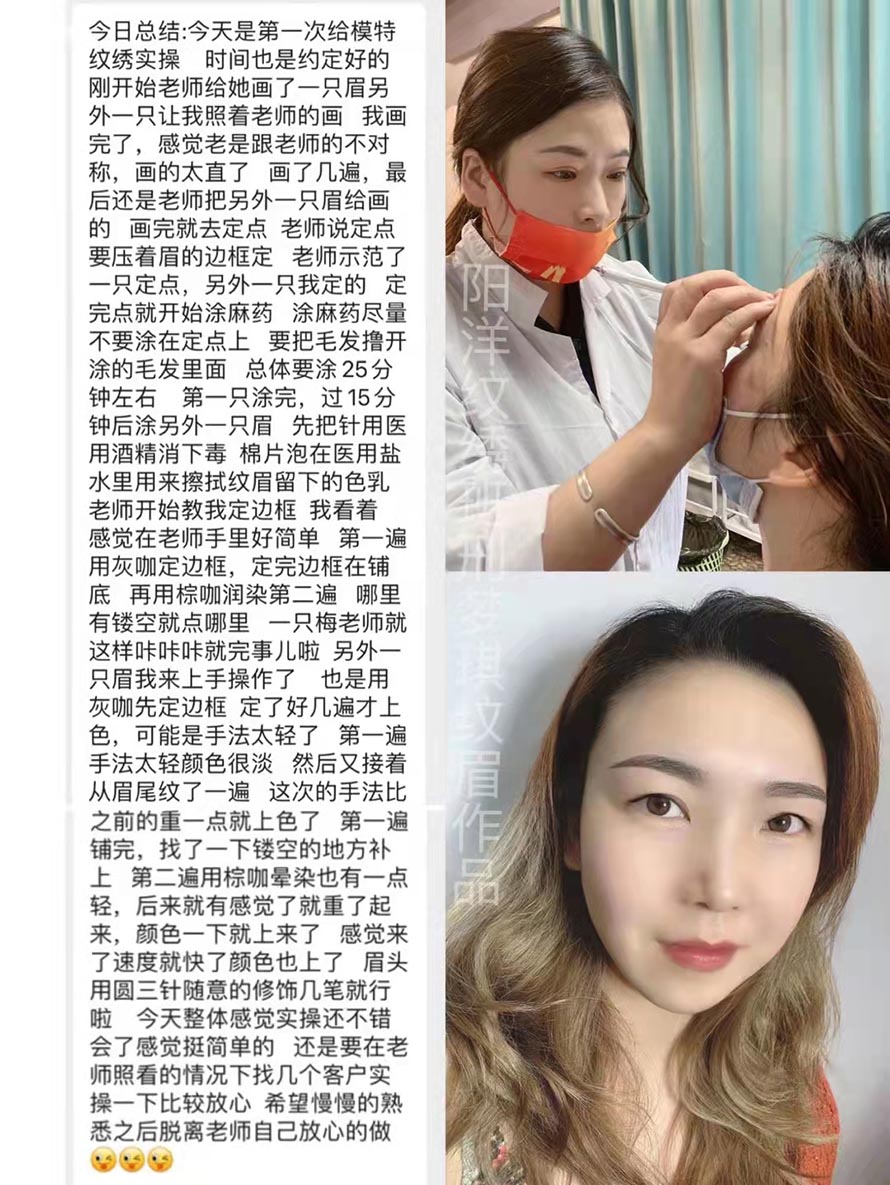 在眉形設(shè)計、霧眉、線條眉、等訓(xùn)練上都需要一周時間左右,再加上真人實操的時間。