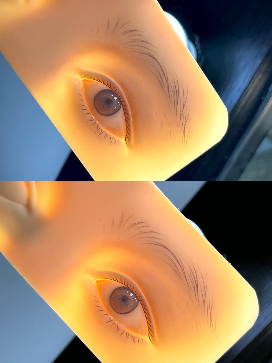 面對真人實操環(huán)節(jié),畢竟這不是在紙上,也不是在仿皮上,這是真實的在人臉上,一想到這些,我害怕,我甚至懷疑自己是不是選錯了。就在這樣的心態(tài)下,當初的你為什么想學紋繡?面對困難,你真的要放棄嗎?要做個逃兵嗎?我的答案當然是不,我想成功,我不想花費了那么多的精力和財力,我最終卻一無所獲。于是我試著將說服自己,將人臉當作仿皮,