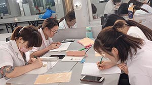 紋繡班學(xué)生紙上眉毛課堂練習(xí)花絮