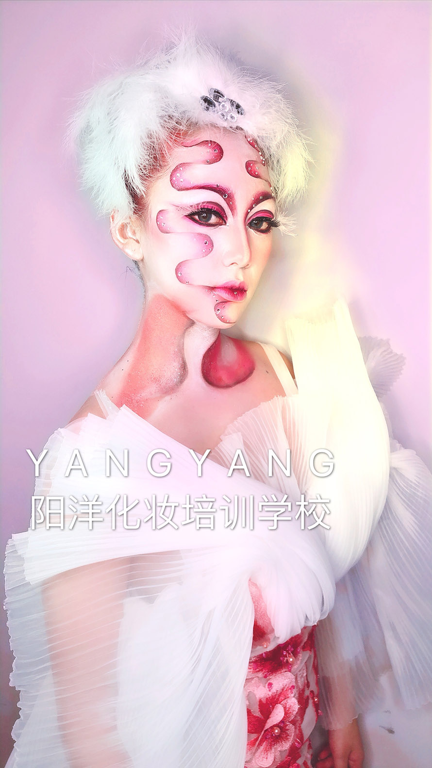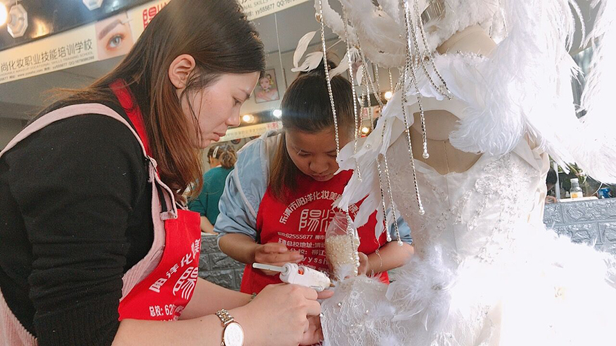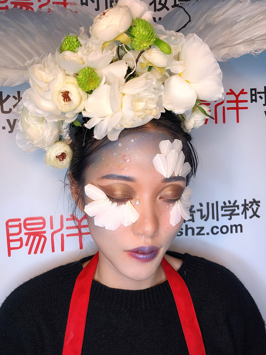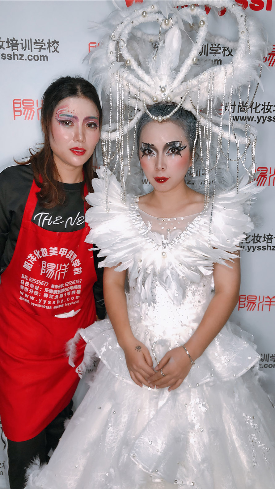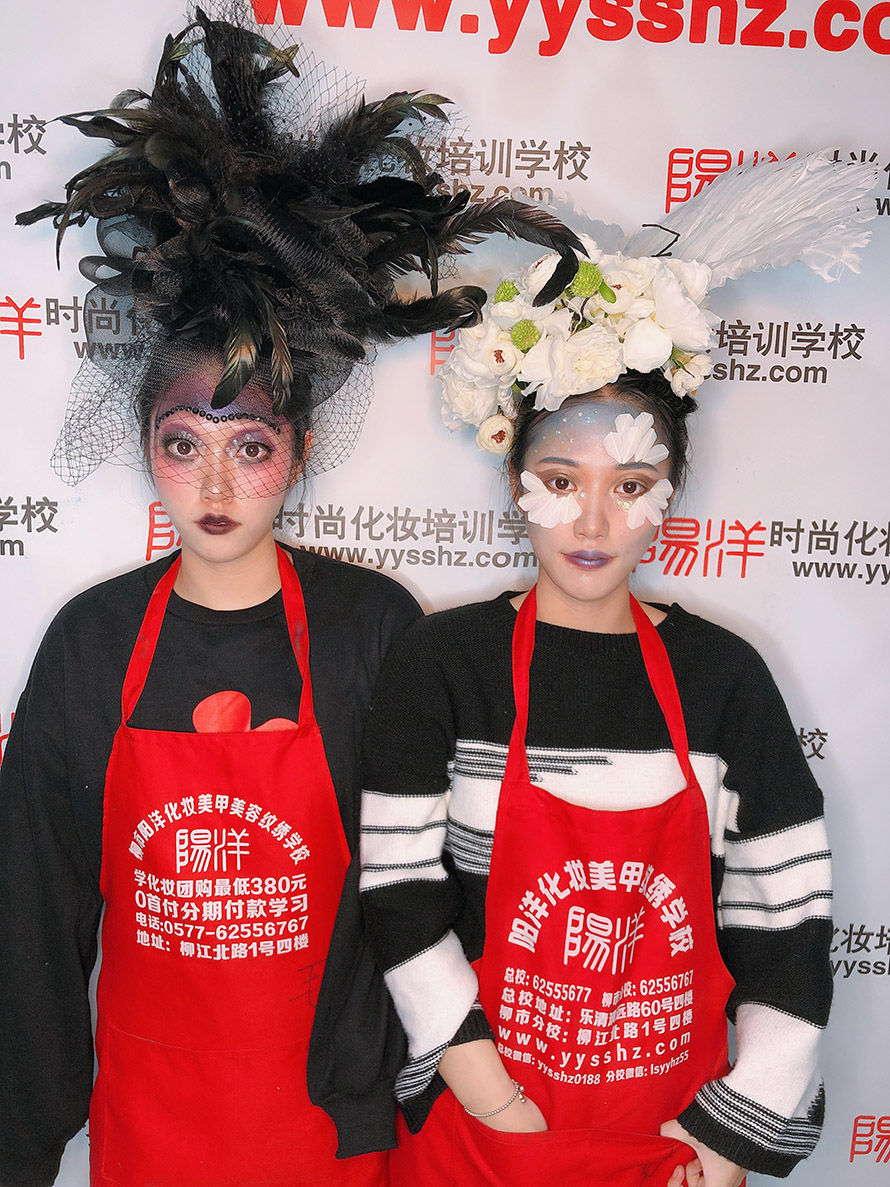 了解到陽洋學(xué)校是政府審核的正規(guī)化妝技能培訓(xùn)學(xué)校,于是帶她們到學(xué)校來報名學(xué)習(xí)課程。這是她們第一次互相對練創(chuàng)作出來作品。