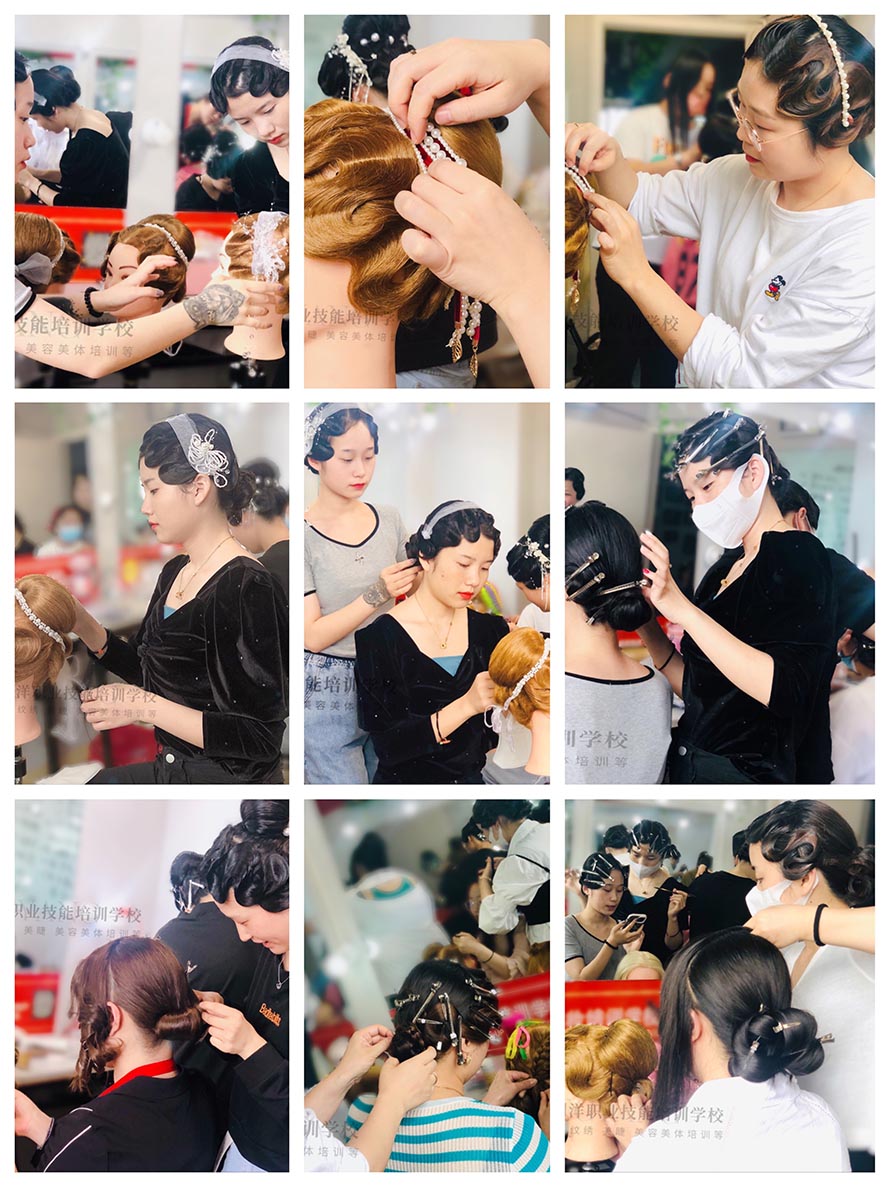 學(xué)習(xí)新娘整體造型,同學(xué)之間練習(xí)