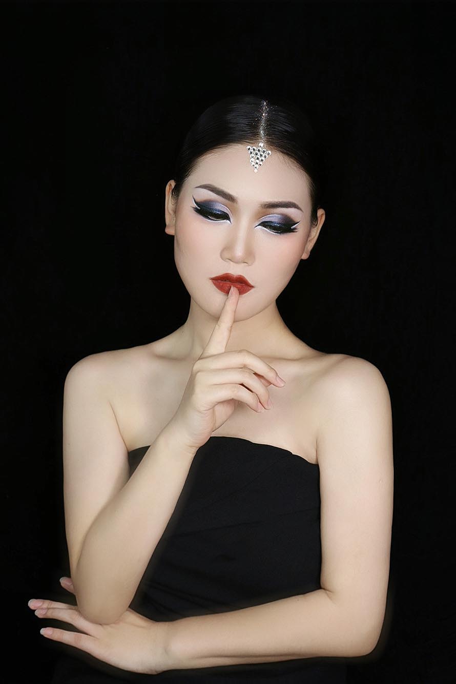 最后,如果臉部狀做的比較花哨,那么頭部最好不要做過多修飾,讓頭發(fā)貼勞就好,用一線簡單的發(fā)飾即可。