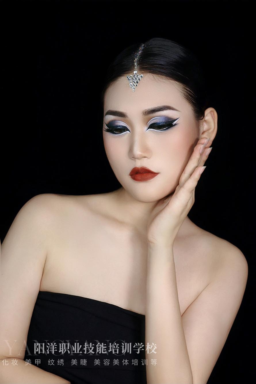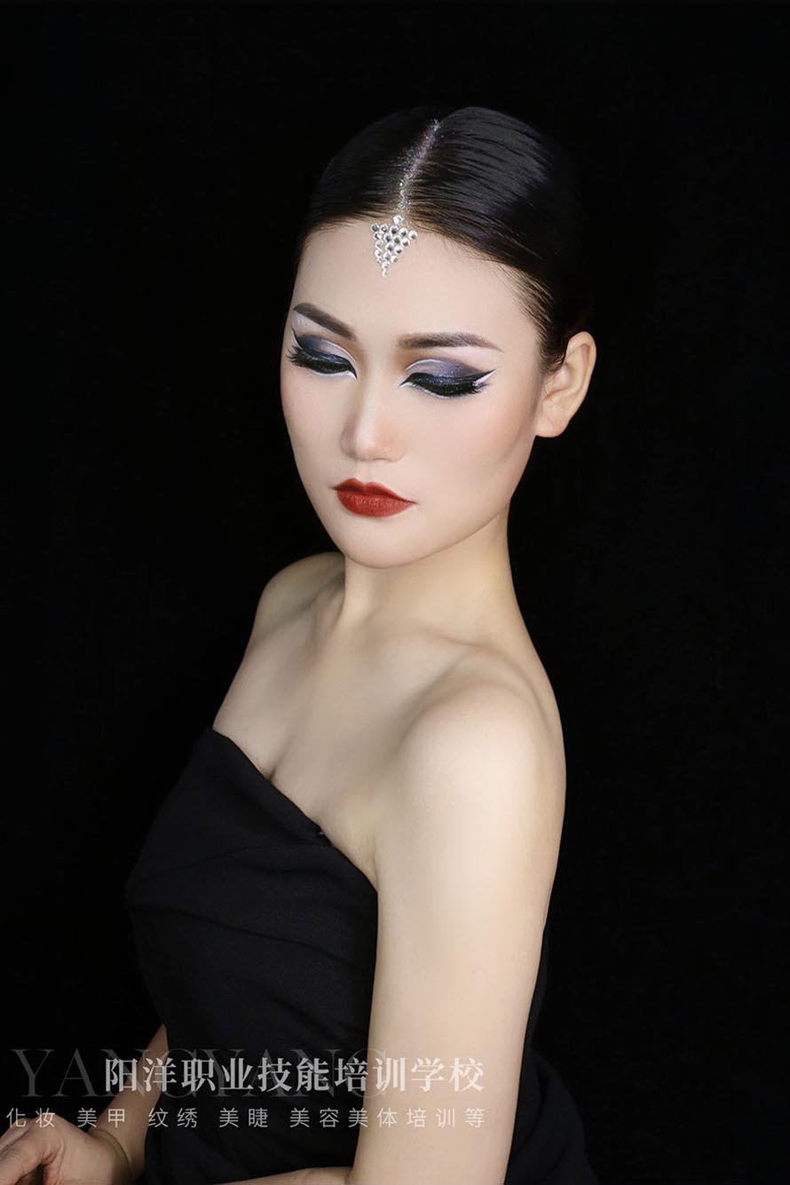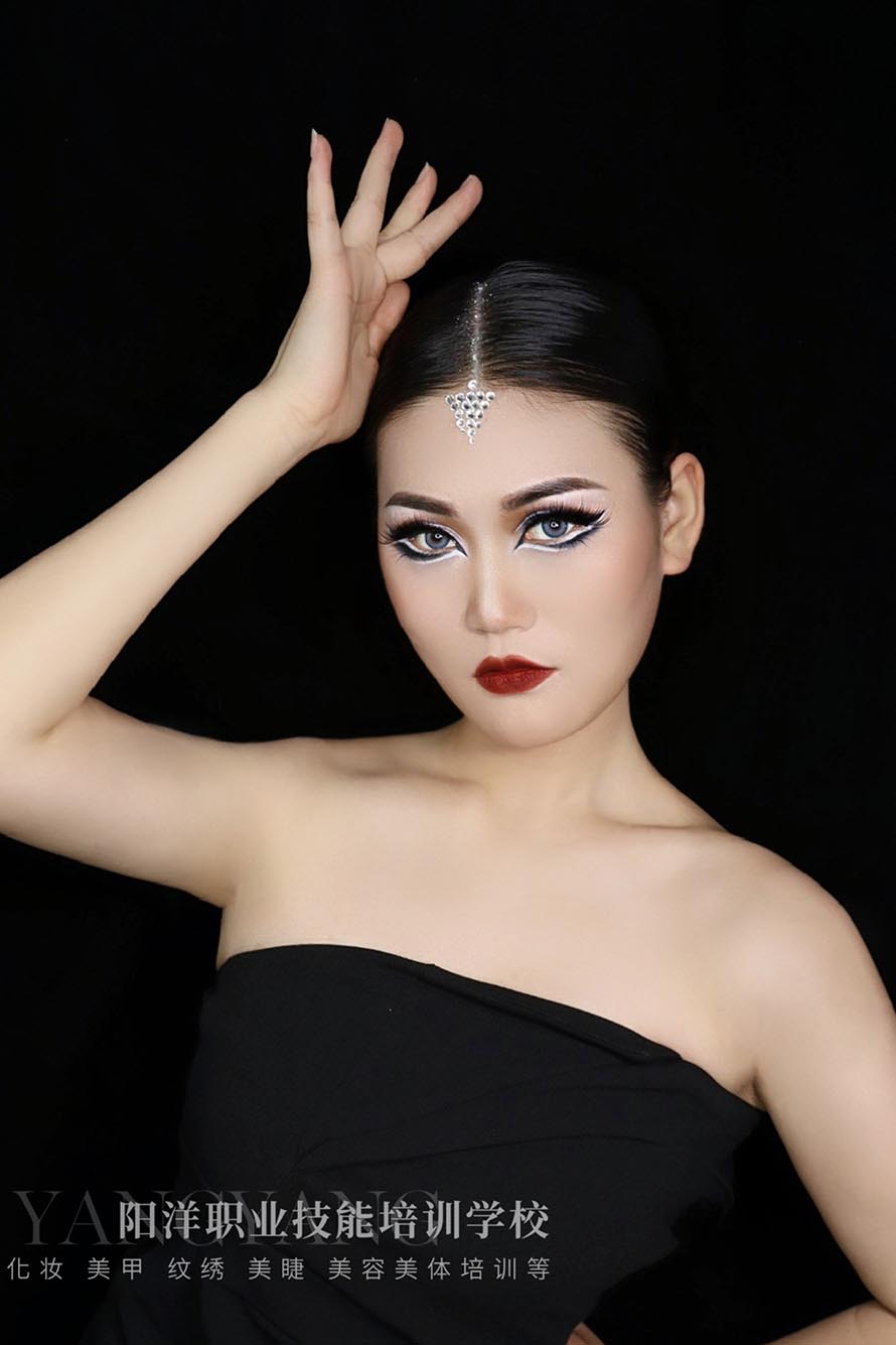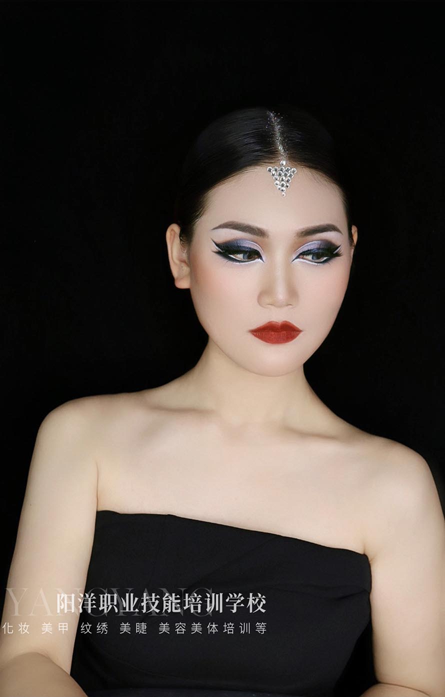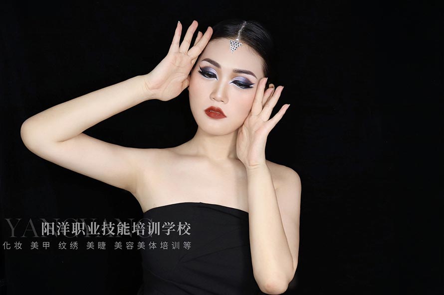 眼妝是拉丁舞化妝的最重要的部分了。首先一副假睫毛肯定是必須的。拉丁舞化妝中的假睫毛可以選擇重一點的,毛長,毛密的那種。有些帶有亮片或水鉆那種也是不錯的選擇。一旦選擇了帶假睫毛,那么眼線一定要化才粗一點,拉丁舞化妝總體上還一般化妝的原則還是一樣的,但是眼部最好還是能稍微夸張一點,將上下眼線最終鏈接到一起,這樣有利于與濃密的假睫毛呼應,眼尾大部分拉丁舞愛好者喜歡向上挑起,這是一個不錯的選擇,當然也可以按你需要向旁延伸,但是不做眼尾和下眼尾是切忌不可選的。