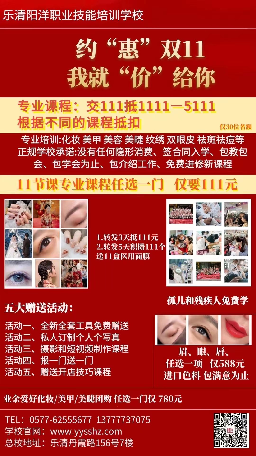 - 樂清陽洋化妝培訓學校喊你來砸金啦!你還在等什么?