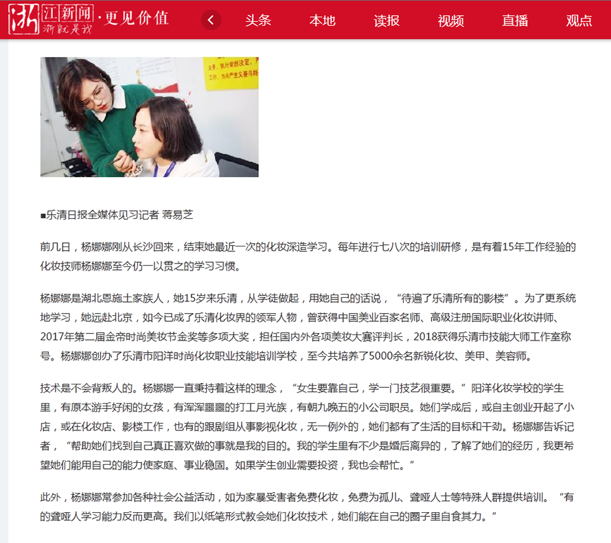 以她專業(yè)的授課模式,專注的化妝技能,2018年評為“樂清市工匠” “樂清市高級技能人才 ” “樂清市楊娜娜大師工作室“都是政府部門頒發(fā)給楊娜娜老師榮譽稱號。