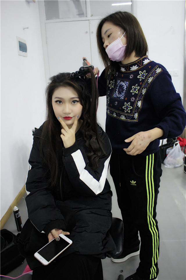 我們是樂(lè)清陽(yáng)洋化妝學(xué)校的化妝師,我們大多是女生,我們大都很年輕,因?yàn)槲覀兇蠖紱](méi)有什么高學(xué)歷,就跟你想象的一樣,我們很早接觸學(xué)化妝,然后一入化妝行業(yè)就是好多年頭。