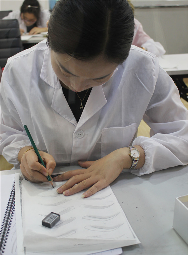 我很喜歡這所學(xué)校,喜歡學(xué)校李的每一位女子,因?yàn)樵谒齻兩砩衔铱吹搅艘粋€(gè)現(xiàn)代女性愛學(xué)習(xí),渴望知識(shí),不斷拼搏向上的精神, 值得我敬佩的不屈的朝氣蓬勃的生命,在學(xué)校的課堂中,陳老師認(rèn)真負(fù)責(zé)的教學(xué)態(tài)度讓我受益匪淺,從一開始講解的紋繡理論知識(shí), 再到老師手把手的在練習(xí)皮紙上的操作,如何設(shè)計(jì)適合客戶的眉形,眉眼唇色乳的調(diào)配等等,我求知若渴也常常向老師討教不懂的問題,