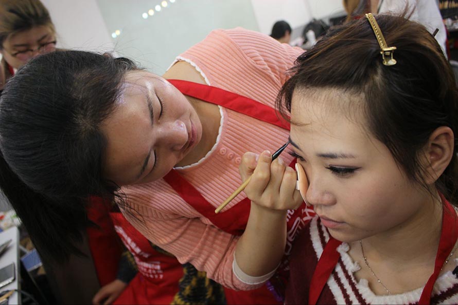 我曾經(jīng)是一個(gè)地地道道的打工娃,年年打工年年空,回家過(guò)年總是兩手空空,時(shí)間一年一年過(guò)去了,看見(jiàn)和我差不多大小的都買(mǎi)車(chē)買(mǎi)房,自己心里就心生羨慕,可如果出來(lái)再打工還是趕不上別人,在選擇想要更好的經(jīng)濟(jì)來(lái)源,我選擇了先投資自己,我本就喜歡給自己愛(ài)打扮,為什么不更深入的了解化妝這一行呢? 在朋友和我老公的幫助下,我來(lái)到了樂(lè)清找化妝學(xué)校,之前也找了好幾家,然后經(jīng)過(guò)朋友介紹來(lái)到了陽(yáng)洋化妝培訓(xùn)學(xué)校,陽(yáng)洋學(xué)校的老師很耐心的和我講解,讓我對(duì)學(xué)校更了解,就和老公一直決定留在陽(yáng)洋化妝學(xué)校! 想起第一天來(lái)校學(xué)習(xí)的情景,那時(shí)候老師在教如何打眼影,我什么都不懂,媛媛老師笑著對(duì)我說(shuō),沒(méi)關(guān)系慢慢學(xué),有什么不懂的盡管問(wèn),媛媛老師不管是在第一個(gè)月還是第四個(gè)月都一直很有耐心,在老師的耐心教導(dǎo)下我還做出了屬于自己的創(chuàng)意妝作品,在此感謝對(duì)我關(guān)心的所有老師。 學(xué)生:呂志琴
