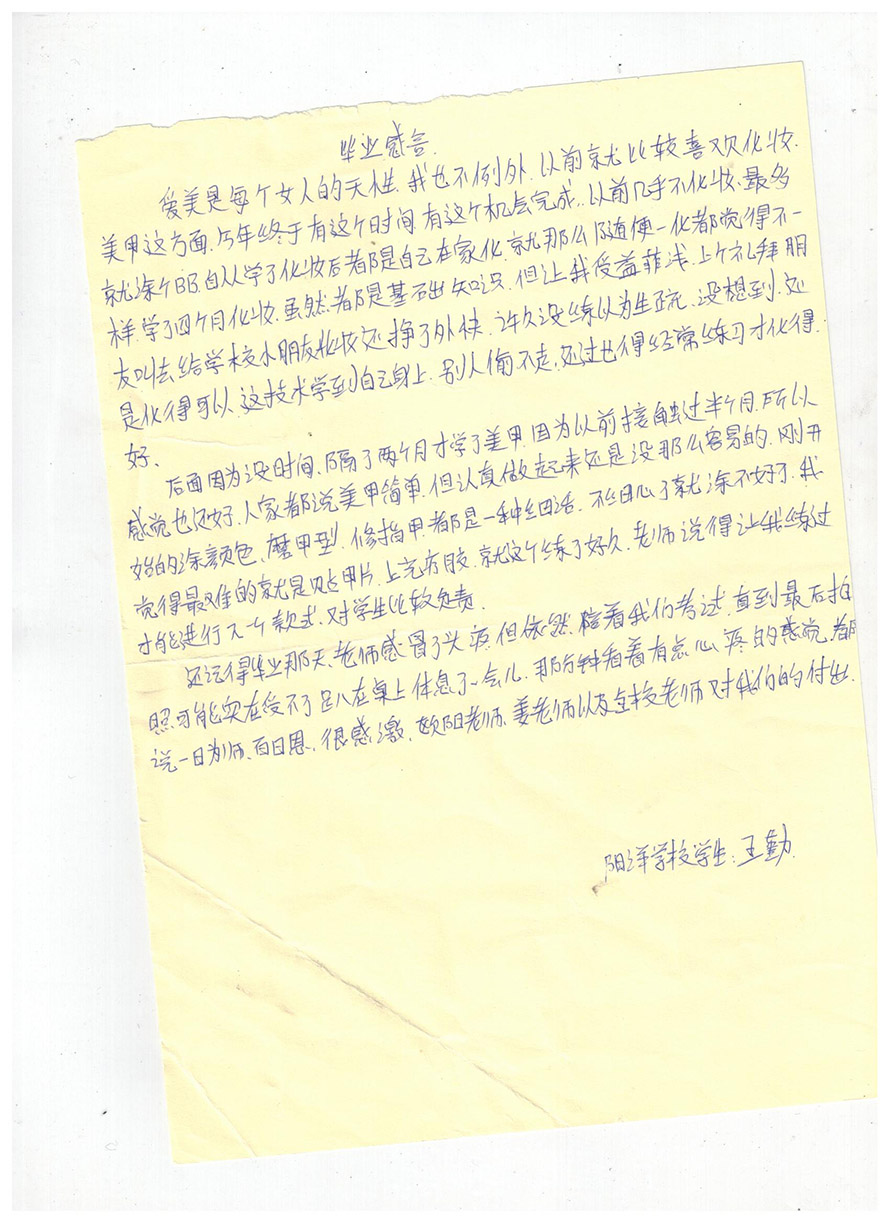 當(dāng)前位置:樂清市陽洋職業(yè)技能培訓(xùn)學(xué)校 » 學(xué)員感悟王勤同學(xué)畢業(yè)感言發(fā)布時間:2018-10-23 10:34:35瀏覽次數(shù):1964  |