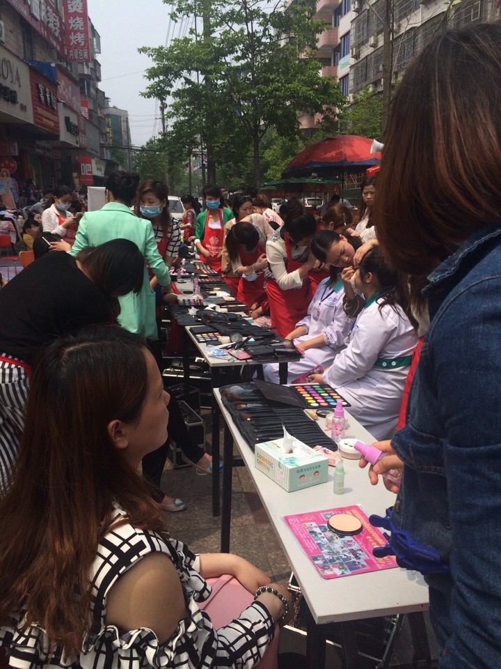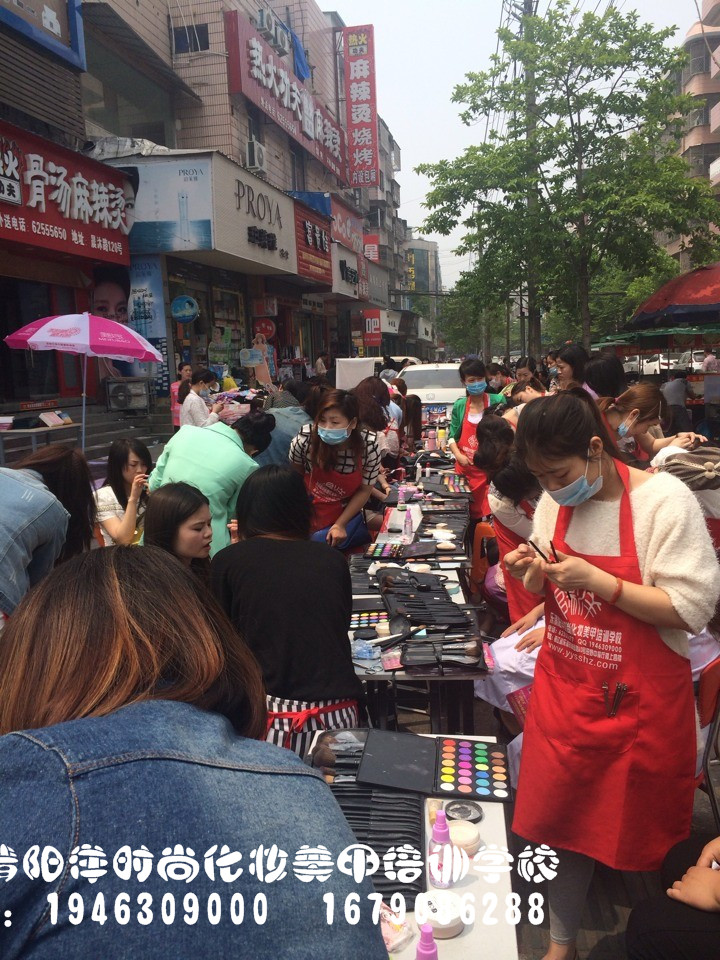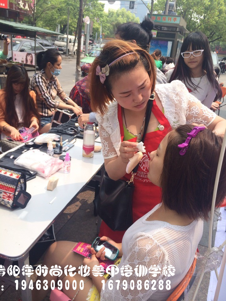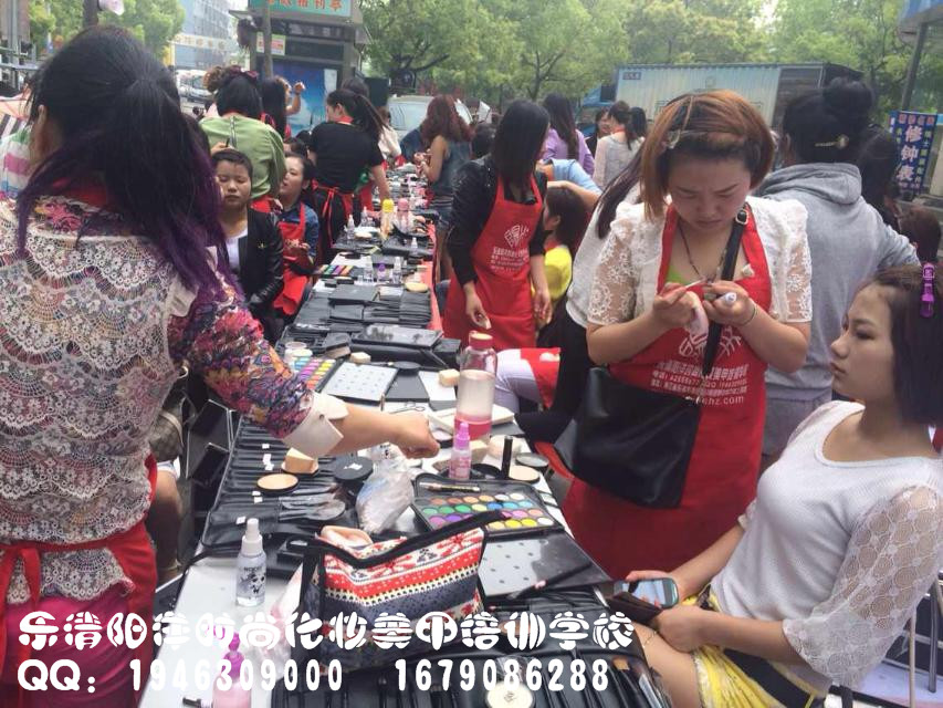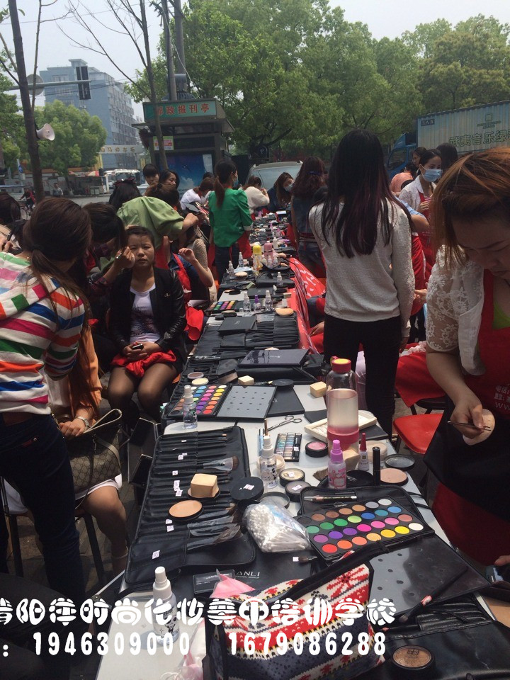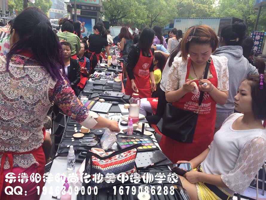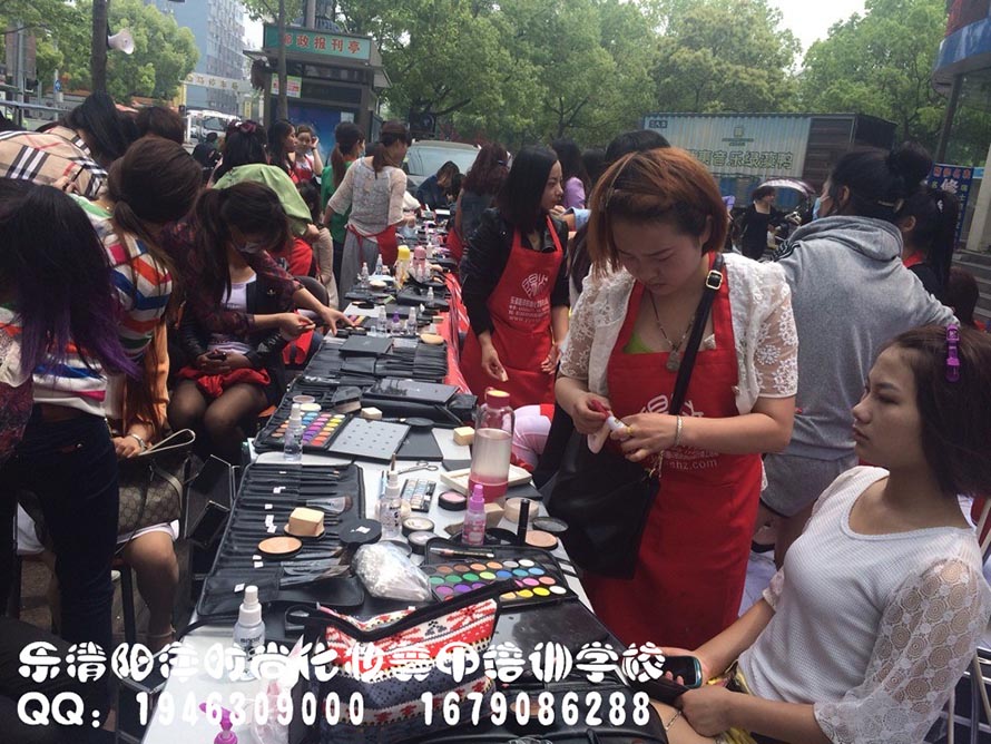 樂(lè)清陽(yáng)洋時(shí)尚化妝培訓(xùn)學(xué)校昨日義務(wù)免費(fèi)化妝!同學(xué)們都忙個(gè)不挺!排隊(duì)化妝中