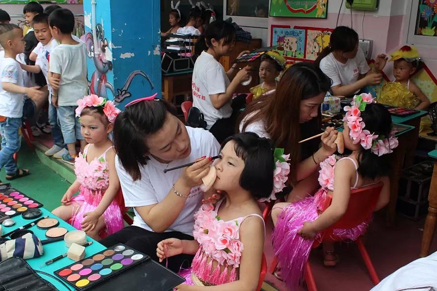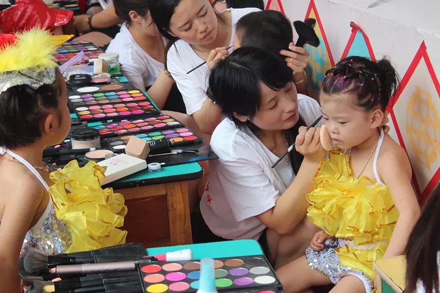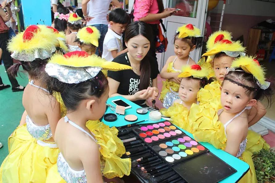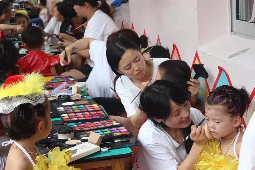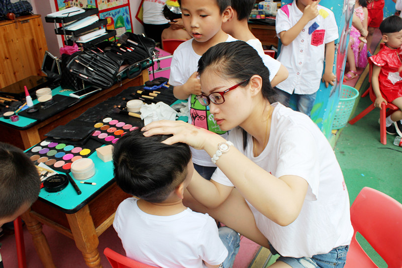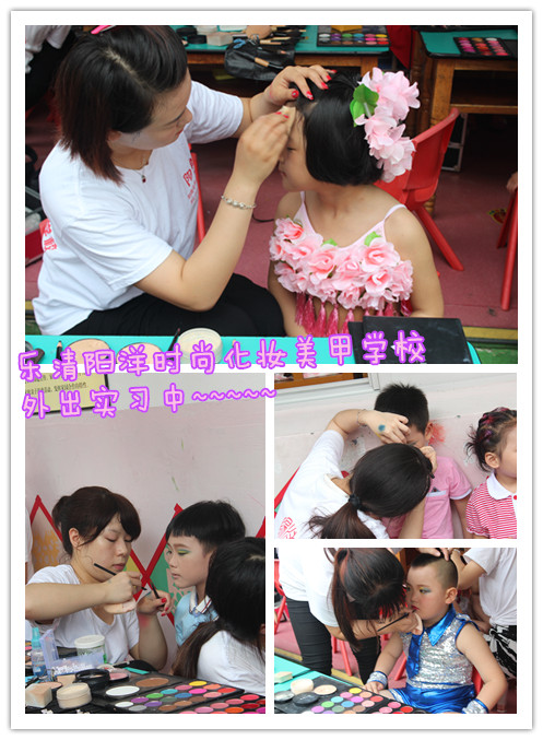 | 2015年陽洋時(shí)尚化妝美甲學(xué)校擔(dān)任樂清東山南幼兒園文藝演出化妝造型。