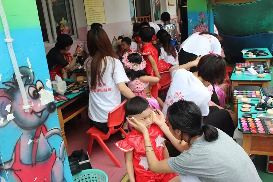 全場化妝由陽洋化妝的學(xué)生完成,一個(gè)小時(shí)快速化了100多個(gè)小朋友,畫出來的妝老師們和家長都很喜歡 去化妝的學(xué)生最短的才學(xué)十幾天,最長的也就2個(gè)月多,每個(gè)學(xué)生都很棒??!