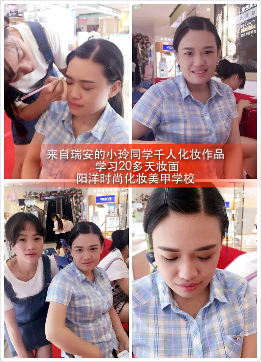 樂清銀泰千人化妝圓滿結(jié)束,樂清陽洋時(shí)尚化妝技能培訓(xùn)學(xué)校擔(dān)任本次化妝造型~~~同學(xué)們出去化妝每個人都棒棒噠~客人非常喜歡同學(xué)們的妝面~夸她們化的好~現(xiàn)場好多顧客都說來我們學(xué)校學(xué)習(xí)呢~開始都以為同學(xué)們學(xué)很久了~最短的學(xué)習(xí)7天同學(xué)也出去化妝啦~[鼓掌][鼓掌]今天的客人基本都特別喜歡同學(xué)們畫的眉毛~~從下午2點(diǎn)一直堅(jiān)持到晚上10點(diǎn)~辛苦了可愛的同學(xué)們~感謝銀泰的大力支持~感謝同學(xué)們配合~感謝學(xué)校的每一位老師~辛苦的教導(dǎo)出的這么多的優(yōu)秀學(xué)生~她們都棒棒的~下次就是萬人化妝啦~~期待哦…