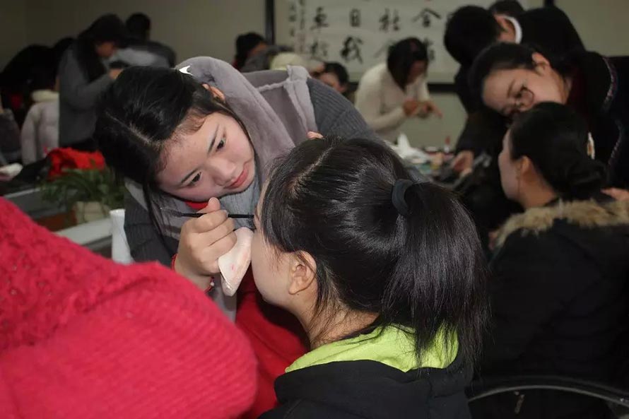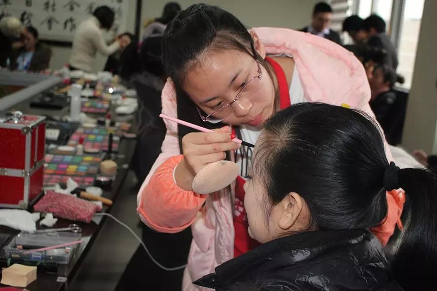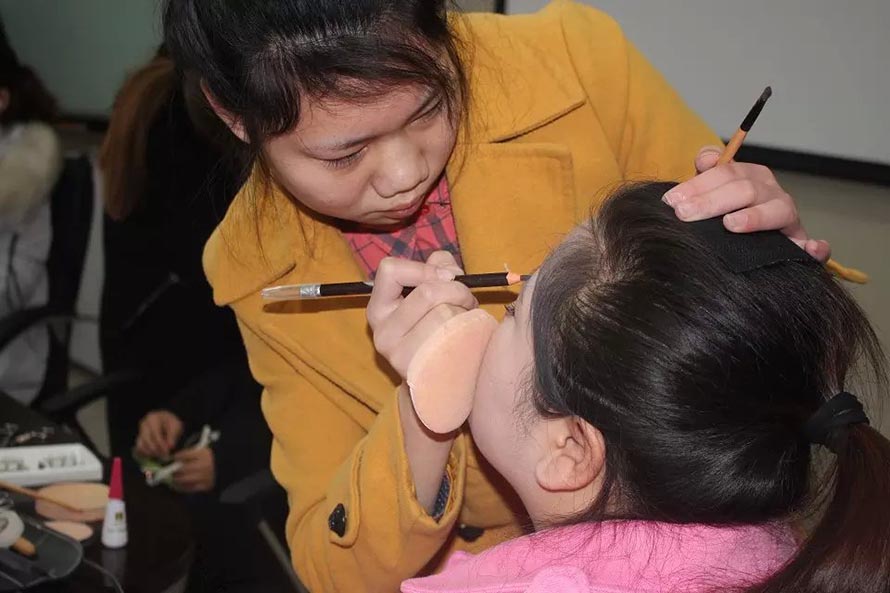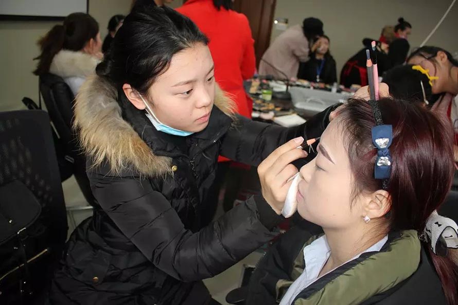 2015年12月29日下午1點,樂清市陽洋時尚化妝職業(yè)培訓(xùn)學(xué)校受邀成為樂清工業(yè)區(qū)某公司周年晚會指定化妝造型學(xué)校,為演出人員提供化妝造型服務(wù)。