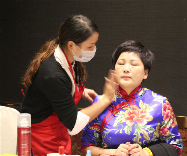 10月16日,昨日周末樂清陽(yáng)洋化妝學(xué)校學(xué)員受邀樂清某內(nèi)衣展,給十幾位愛美女性進(jìn)行外出化妝,時(shí)尚C班學(xué)員第一次外出實(shí)習(xí),每位學(xué)員都很激動(dòng),早早的收拾好化妝工具,來到現(xiàn)場(chǎng)做準(zhǔn)備。首先給客人進(jìn)行妝面風(fēng)格的打造,然后為客人們換上旗袍服裝,最后,造型師根據(jù)所打造的風(fēng)格為客人定制一款合適的發(fā)型。