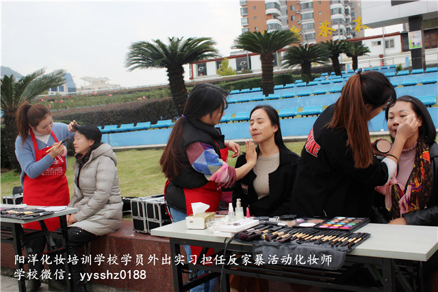 11.25號已經(jīng)是深冬了, 在晨沐廣場露天化妝,雖然寒風(fēng)刺骨,卻絲毫沒有影響學(xué)生們化妝的熱情!樂清陽洋化妝培訓(xùn)學(xué)校