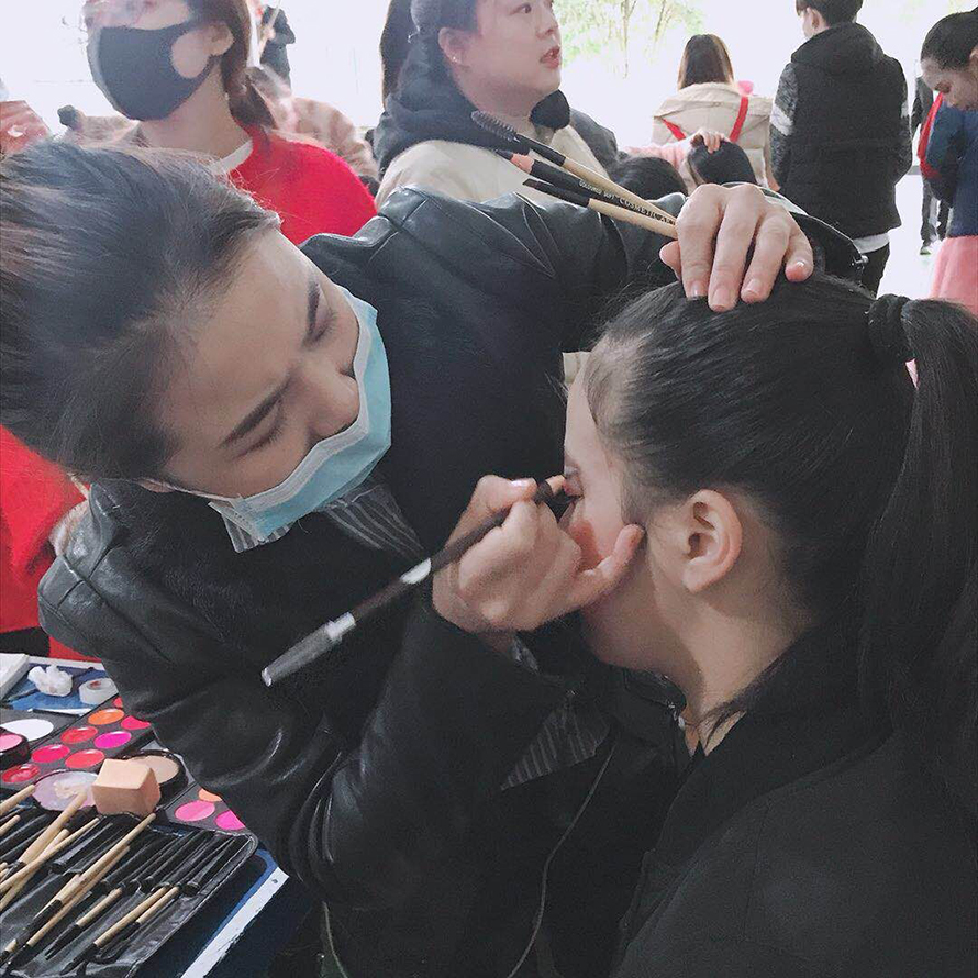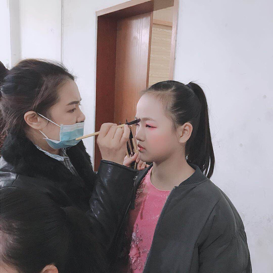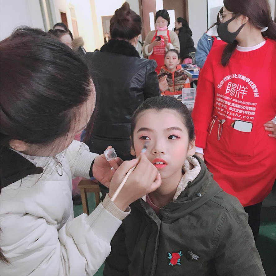 這些化妝師來的時候都是0基礎(chǔ)的學員,什么都不懂,通過老師手把手的教,一個月月考完后,她們順利考試過關(guān),然后老師帶出去實習,實習過程中孩子的媽媽們都夸她們化妝精致