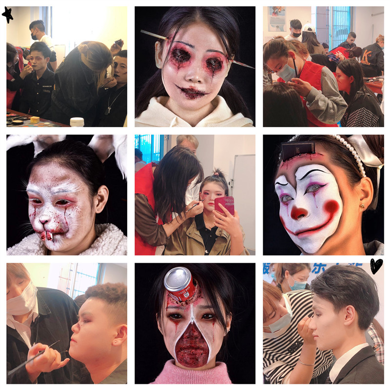 萬圣節(jié)是西方的傳統(tǒng)節(jié)日,日期是在公歷每年的11月1日。萬圣節(jié)前夜10月31日是這個節(jié)日最熱鬧的時刻。傳說這一晚,各種鬼怪也會裝扮來搗蛋一起慶祝萬圣節(jié)。 同學(xué)把老師教的骷髏妝,哥特妝,特效特效妝都用到了萬圣節(jié)這天 出去實(shí)習(xí)的學(xué)員都是在校學(xué)生,學(xué)習(xí)時間最長一個月, 學(xué)習(xí)化妝主要市以實(shí)操為主,所以陽洋學(xué)校會不定期的安排學(xué)員外出實(shí)習(xí) ,實(shí)習(xí)多多進(jìn)步大大 一天連續(xù)趕好幾場,的確有點(diǎn)小累,大家都說累并快樂著, 實(shí)習(xí)然我們進(jìn)步很快,實(shí)習(xí)是落地最快的學(xué)習(xí)方法。