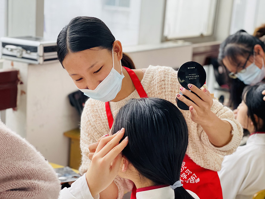 眾所周知,我們學習化妝最離不開的就是實踐了。而我們陽洋化妝學校的學員,在學習理論基礎+實操課程,有了一定的專業(yè)基本功以后,團隊老師再帶領學員一起外出實習,讓學員更快扎實學習內(nèi)容,穩(wěn)固化妝手法。此次由樂清市重點高中樂清中學舉辦的元旦文藝匯演,舉辦方特邀我們陽洋化妝學校擔任本次演出的全程化妝造型指導。下面,請大家跟小編一起去看下當天的熱鬧場面吧~