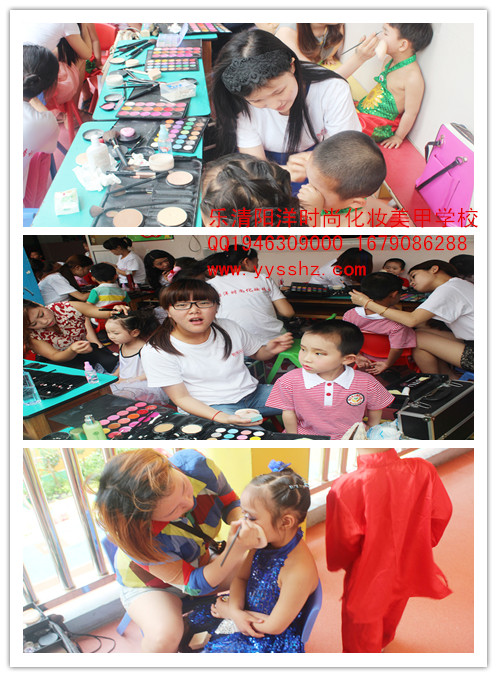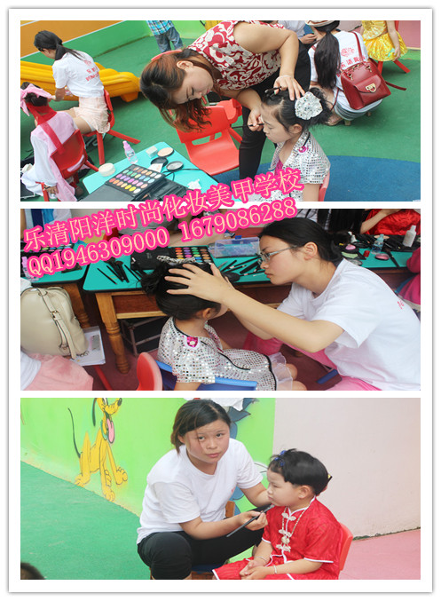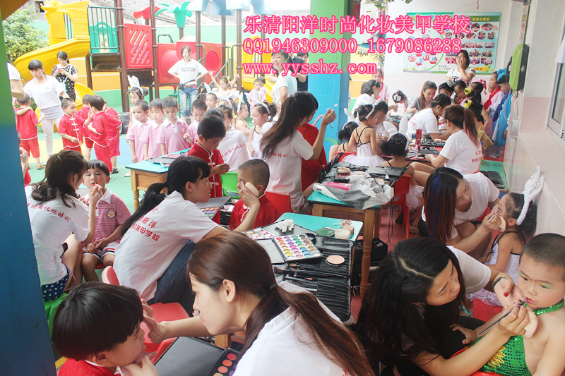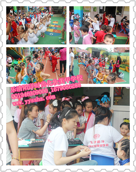 2014年陽(yáng)洋時(shí)尚化妝美甲學(xué)校擔(dān)任樂(lè)清東山南幼兒園文藝演出化妝造型。 全場(chǎng)化妝由陽(yáng)洋化妝的學(xué)生完成,一個(gè)小時(shí)快速化了100多個(gè)小朋友,畫出來(lái)的妝老師們和家長(zhǎng)都很喜歡 去化妝的學(xué)生最短的才學(xué)十幾天,最長(zhǎng)的也就2個(gè)月多,每個(gè)學(xué)生都很棒!! 我們始終相信,外出化妝實(shí)戰(zhàn)是學(xué)習(xí)化妝的最好提升技術(shù)和檢驗(yàn)技術(shù)的方法?;锇閭?,你們辛苦了!