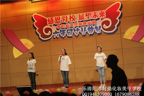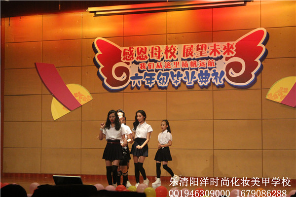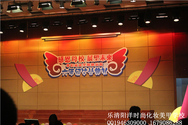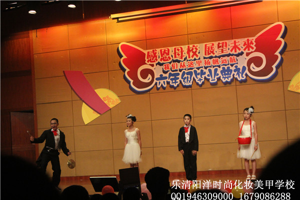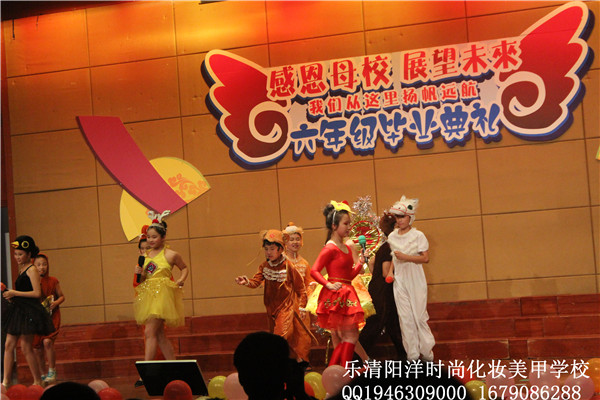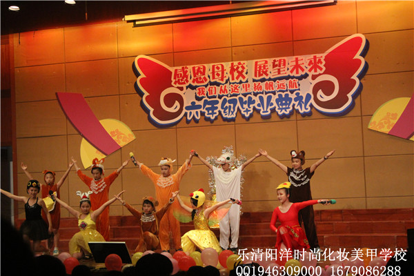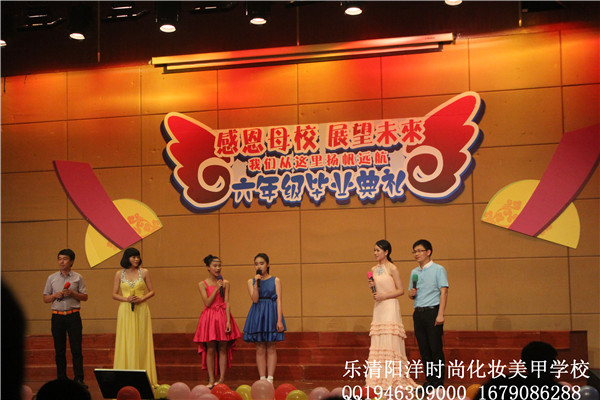 2013年5月26日,樂清外國語學(xué)?!案卸髂感?/span>展望未來 六年級畢業(yè)典禮”隆重舉行,樂清陽洋時尚化妝美甲學(xué)校的專業(yè)學(xué)員應(yīng)邀擔(dān)任此次活動的化妝造型工作,承擔(dān)了活動主持人、形象大使、以及節(jié)目表演者整體形象設(shè)計(jì)。整場化妝造型工作持續(xù)2個多小時,并受到了外國語學(xué)校的領(lǐng)導(dǎo)、嘉賓、及師生的廣泛好評
