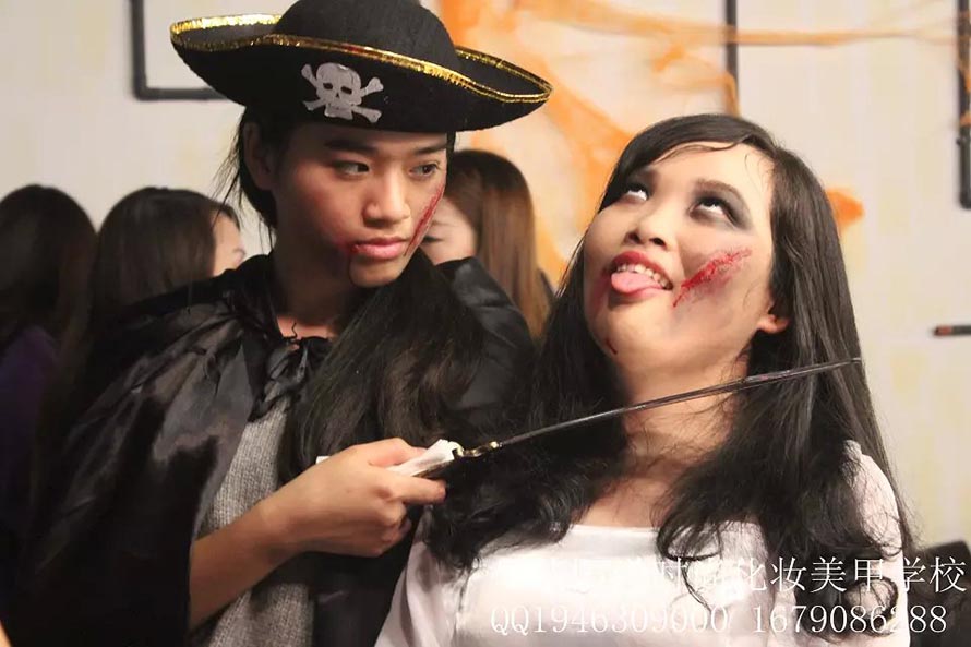 10月31日晚,在萬圣節(jié)舞會(huì)詭異上演,完美的音效、炫目的燈光,血腥的天使、另類的現(xiàn)場。樂清陽洋時(shí)尚化妝美甲學(xué)校的老師們帶領(lǐng)部分同學(xué)為此次萬圣節(jié)舞會(huì)做化妝造型工作,為每位演員打造專屬自己獨(dú)特的鬼妝造型,學(xué)員們興致勃勃,將他們的技術(shù)發(fā)揮到極致,讓每個(gè)妝容逼真恐怖,增添了萬圣節(jié)的詭秘氣氛。同時(shí)通過這次的實(shí)習(xí),鍛煉了技術(shù),增長的不可多得的實(shí)戰(zhàn)經(jīng)驗(yàn)!