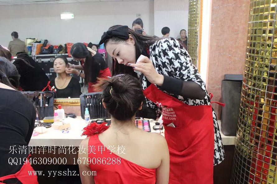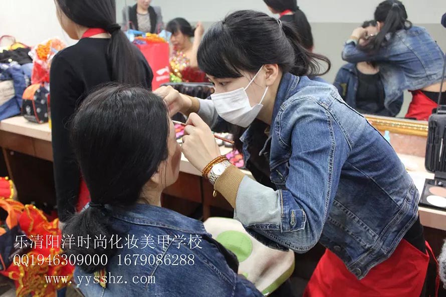 樂清陽洋時尚化妝美甲學(xué)校接到某公司的邀請,學(xué)校的學(xué)生們在老師帶領(lǐng)下,精心的為樂清劇院表演的每一位成員打造最完美的形象。