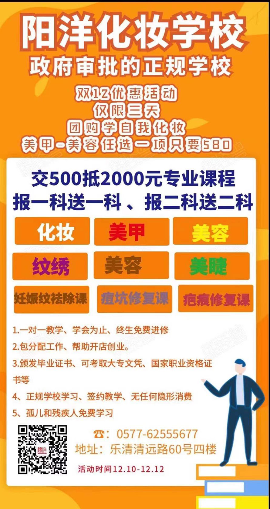 - 樂(lè)清陽(yáng)洋化妝培訓(xùn)學(xué)校喊你來(lái)砸金啦!你還在等什么?