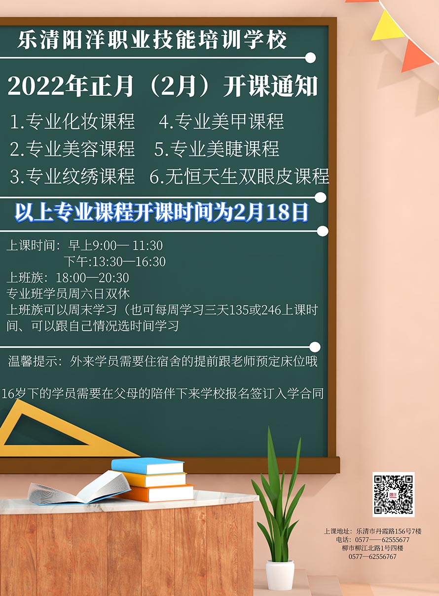 當(dāng)前位置:樂清市陽洋職業(yè)技能培訓(xùn)學(xué)校 » 學(xué)校新聞2022年陽洋化妝學(xué)校 正月開班時間表發(fā)布時間:2022-1-5 10:40:31 瀏覽次數(shù):1973 |