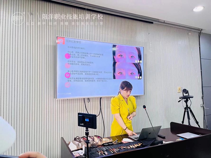 首先講課理論知識(shí)——實(shí)踐給學(xué)生看——再一對(duì)一改妝——30多人老師一對(duì)一的改,