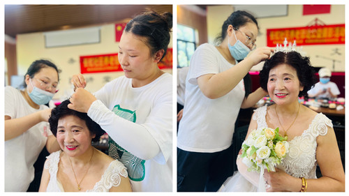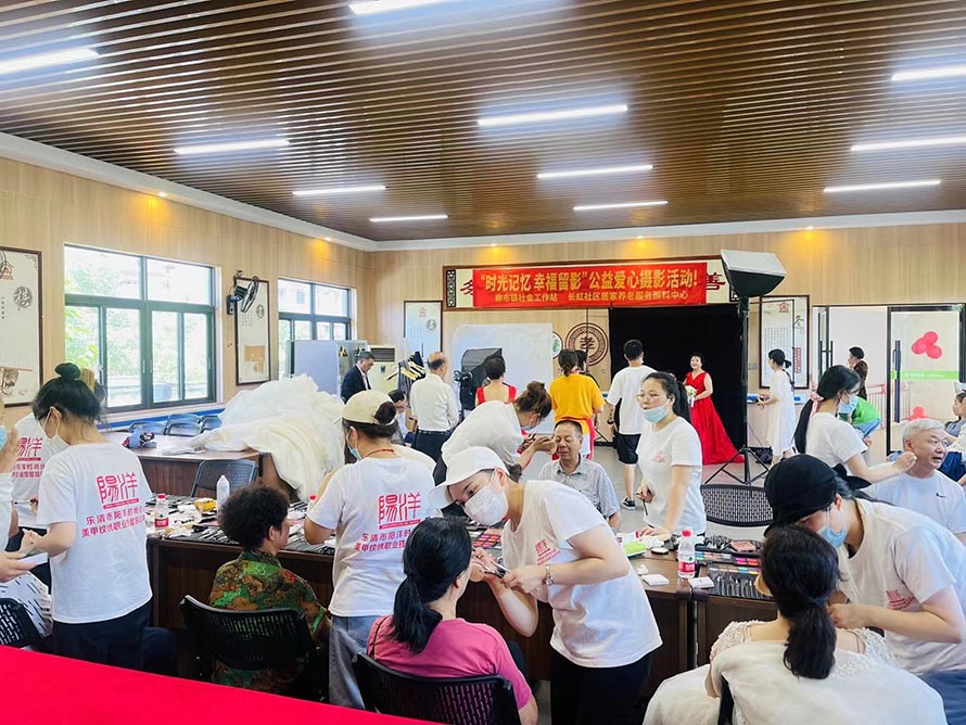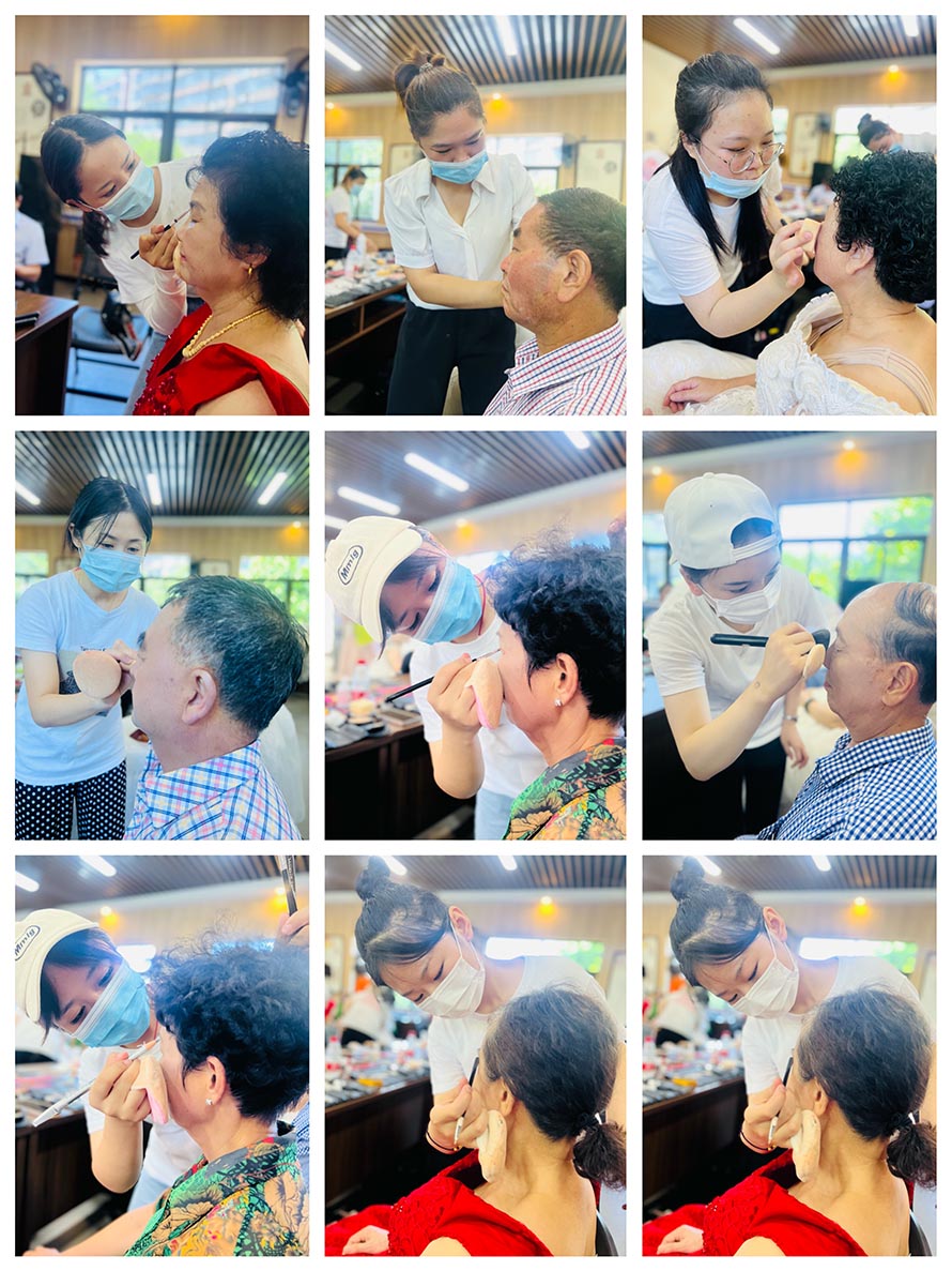 不僅能圓了老人們的婚紗夢,同時(shí)也有助于促進(jìn)家庭與社會的和諧與穩(wěn)定,鐫刻相濡以沫、相親相愛、攜手相伴走人生的金婚銀婚夫婦風(fēng)采,營造尊老敬老的社會風(fēng)尚。 樂清陽洋職業(yè)技能學(xué)校的化妝師們,一大早都開始忙碌起來,為今天我們的化妝師為第一次拍婚紗照的老人們化妝。