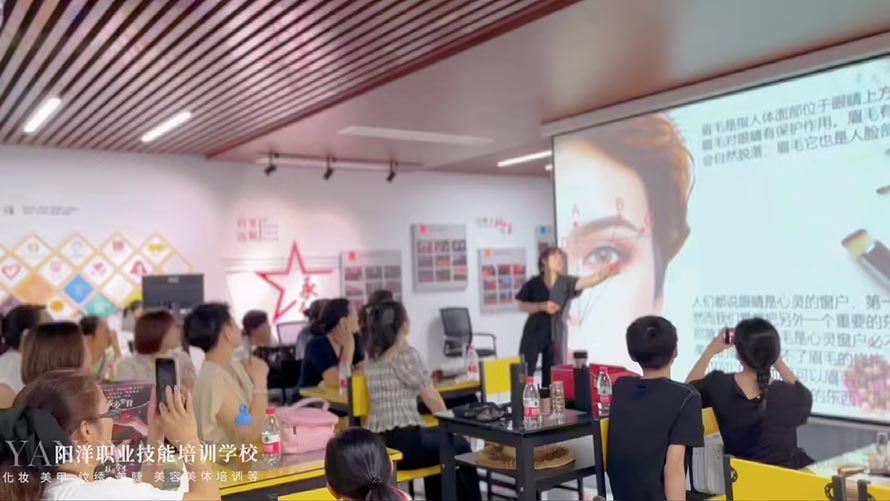 陽洋時(shí)尚化妝培訓(xùn)學(xué)校創(chuàng)始人楊娜娜老師受邀請(qǐng)參加了本次化妝講座。擔(dān)任授課老師。