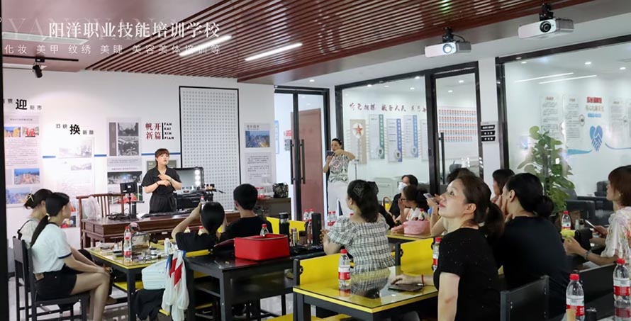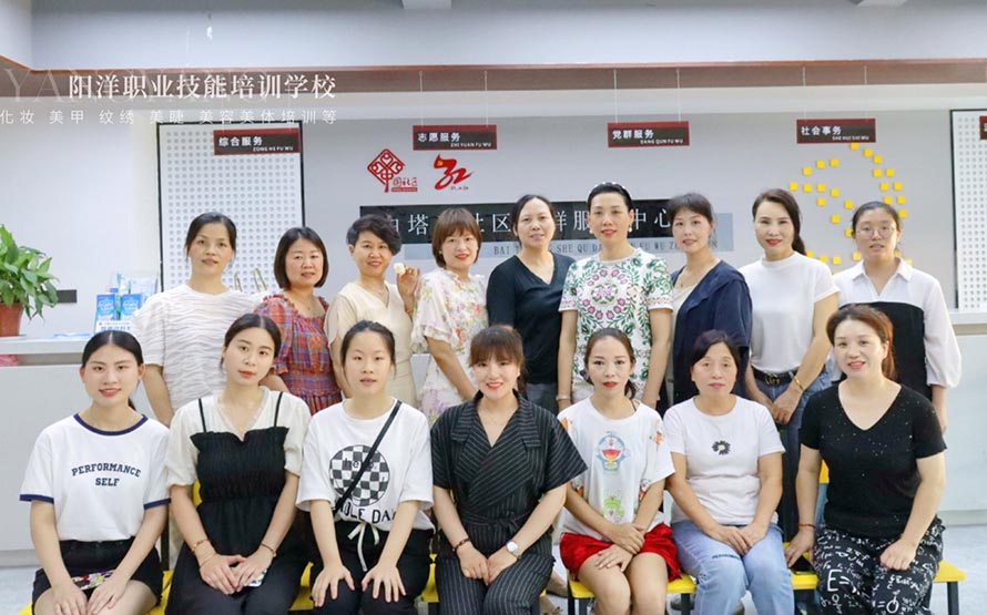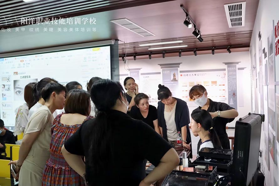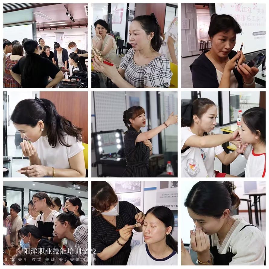 2022年7月10日陽洋時(shí)尚化妝培訓(xùn)學(xué)校在北白象白塔王社區(qū)由樂清總工會(huì)舉辦的一場(chǎng), 針對(duì)不會(huì)化妝社區(qū)人員的化妝技巧化妝課程。