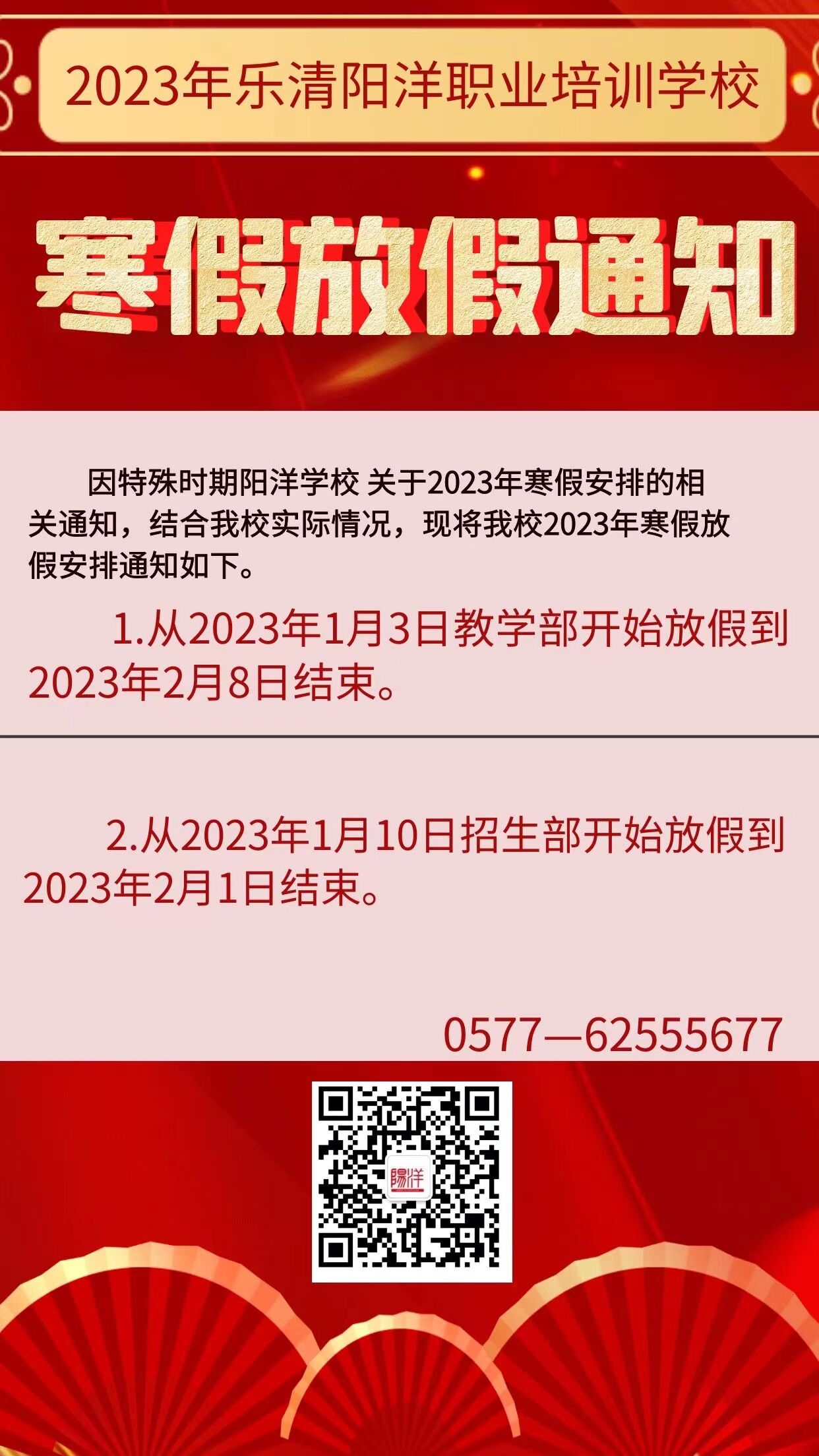 當前位置:樂清市陽洋職業(yè)技能培訓學校 » 學校新聞2023陽洋職業(yè)培訓學校放假通知。寒假放假通知#樂清哪里有學化妝發(fā)布時間:2023-1-3 14:54:30 瀏覽次數(shù):1974 |