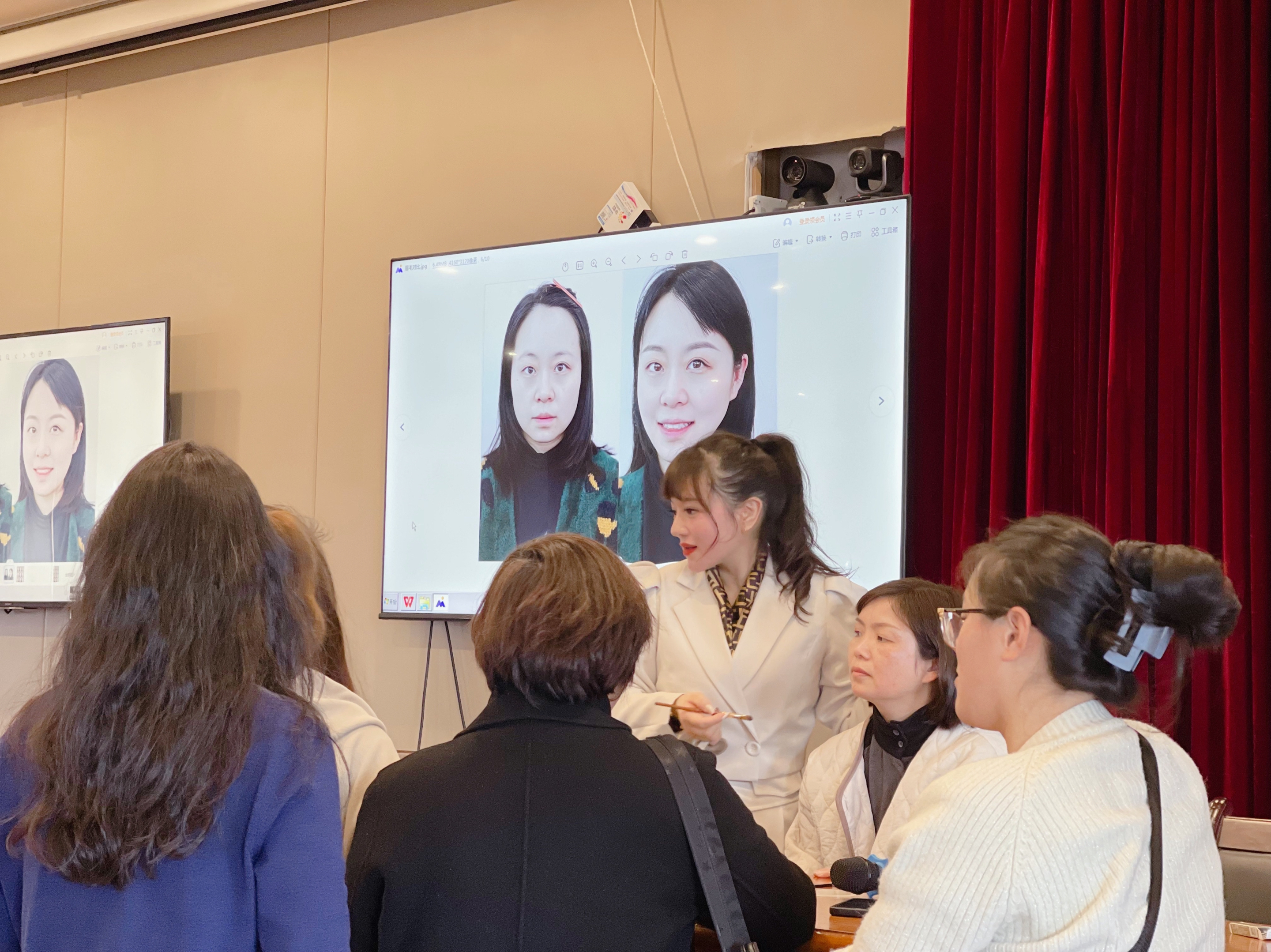 2023年3.8女神節(jié) 陽洋化妝職業(yè)培訓(xùn)學(xué)校很榮幸受樂成街道的邀請 由學(xué)校創(chuàng)始人楊娜娜為機(jī)關(guān)單位女性同胞授課——自我化妝班 開展公益化妝講座,再次感謝總工會的邀請