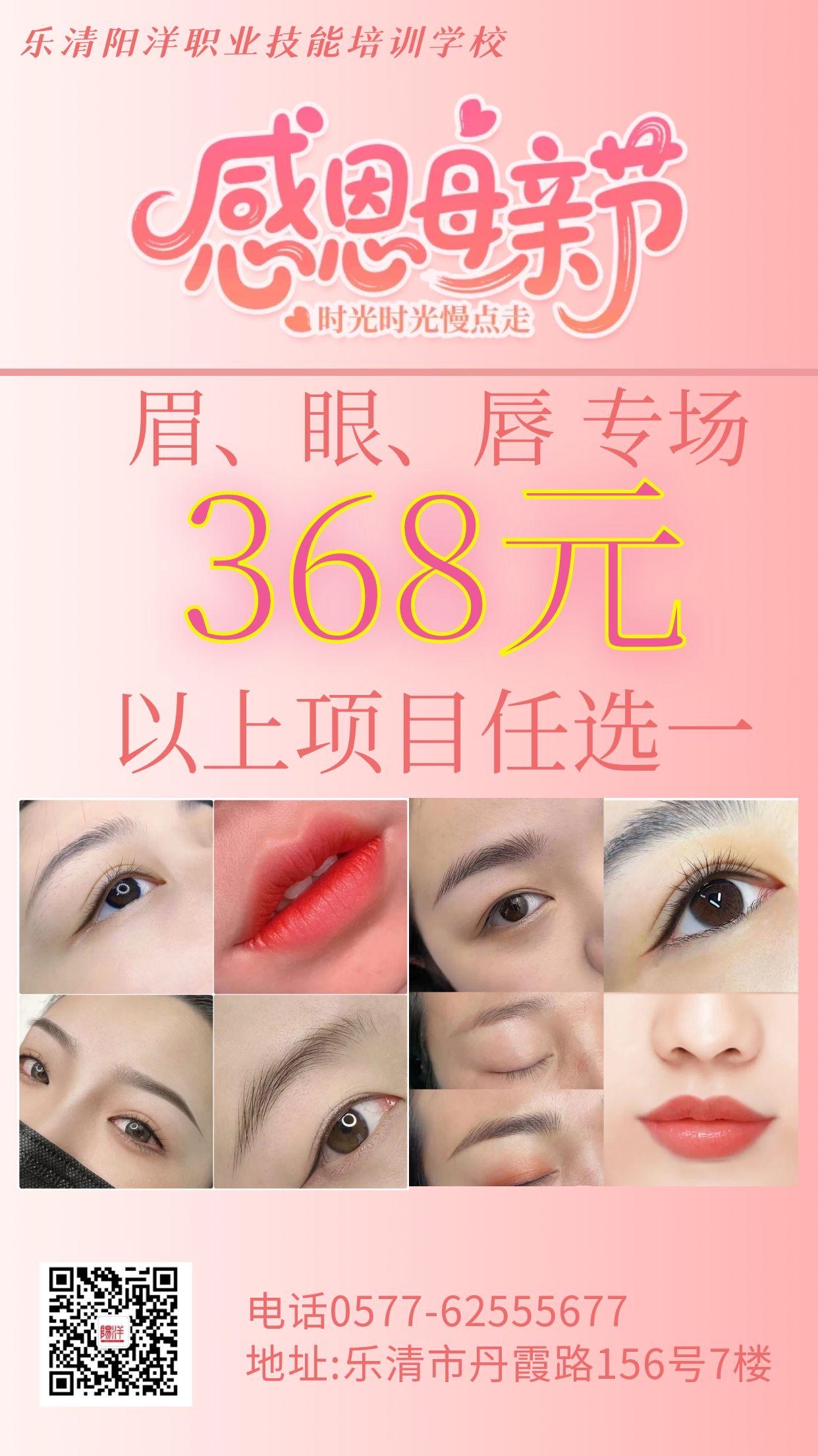 當前位置:樂清市陽洋職業(yè)技能培訓學校 » 學校新聞感恩母親節(jié)眉眼唇368元|樂清哪里學化妝|樂清化妝學校|樂清美甲學校發(fā)布時間:2025-5-9 12:53:29 瀏覽次數(shù):2008 |