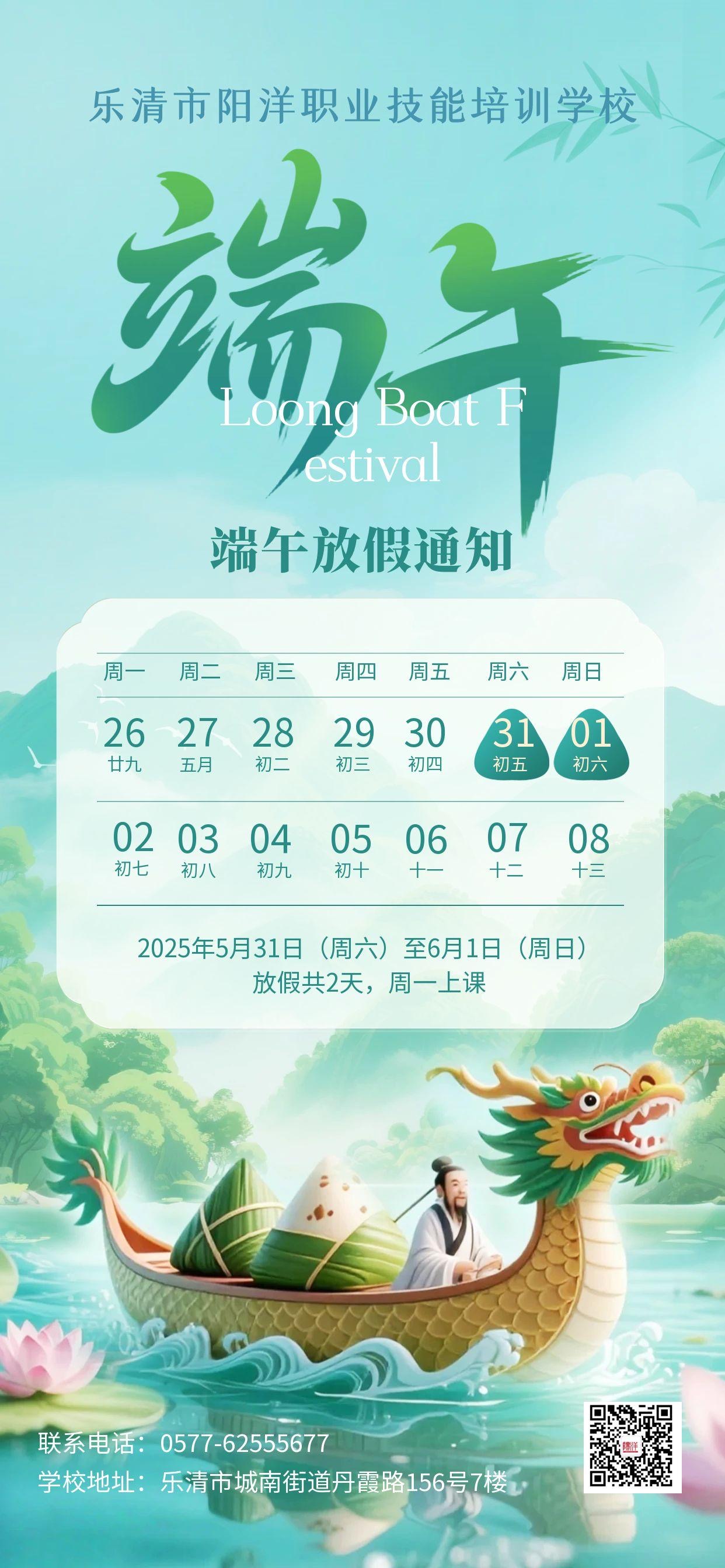 當(dāng)前位置:樂清市陽(yáng)洋職業(yè)技能培訓(xùn)學(xué)校 » 學(xué)校新聞| 2025年端午節(jié)放假通知|樂清哪里有學(xué)化妝|柳市哪里有學(xué)化妝發(fā)布時(shí)間:2025-5-29 14:23:47  瀏覽次數(shù):1993 | ||