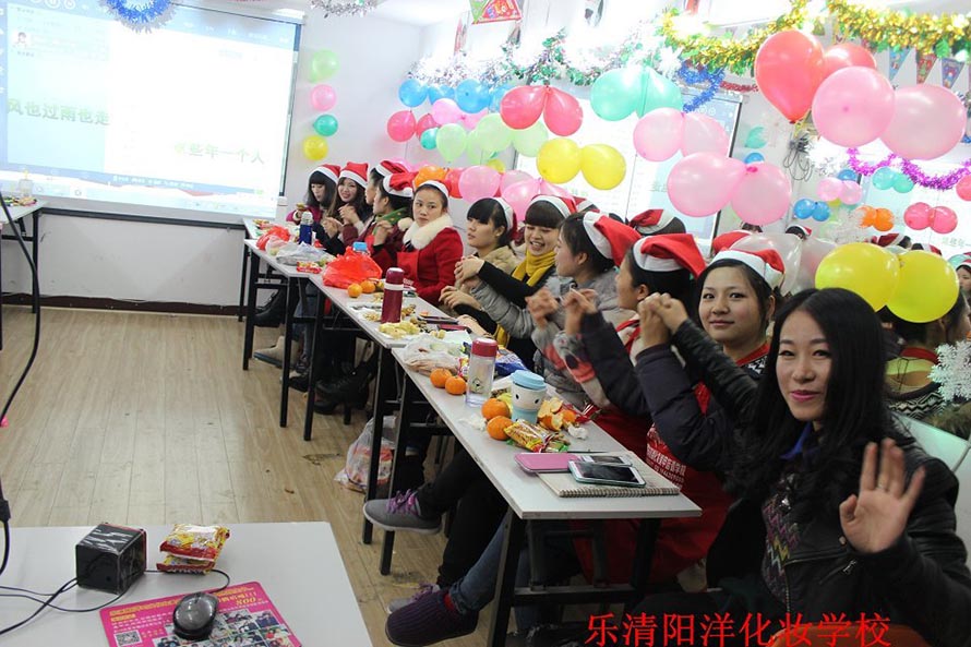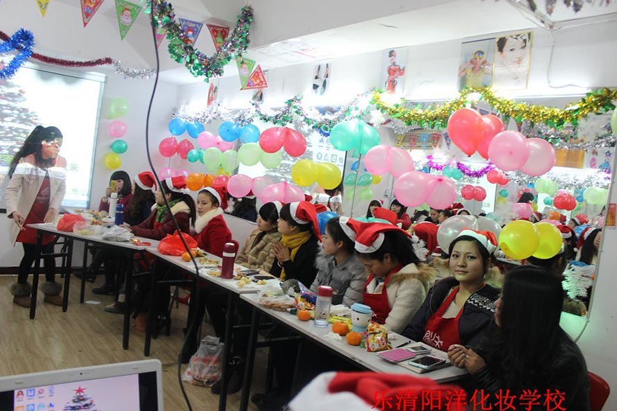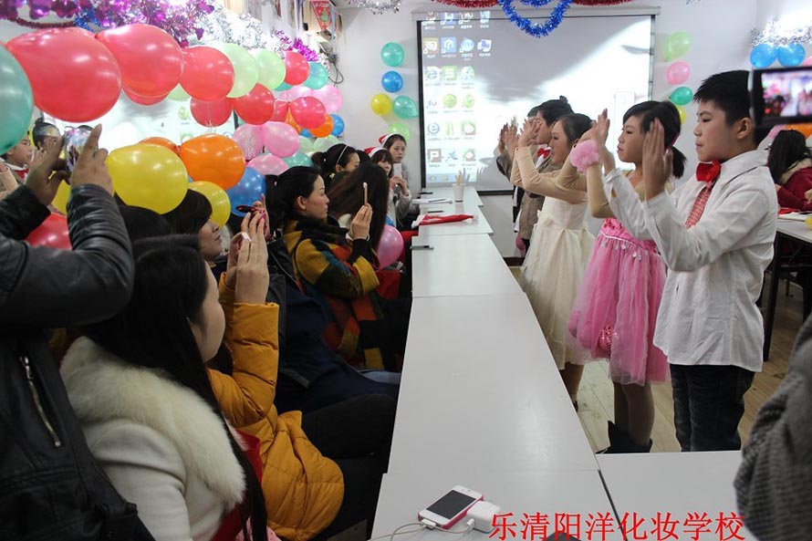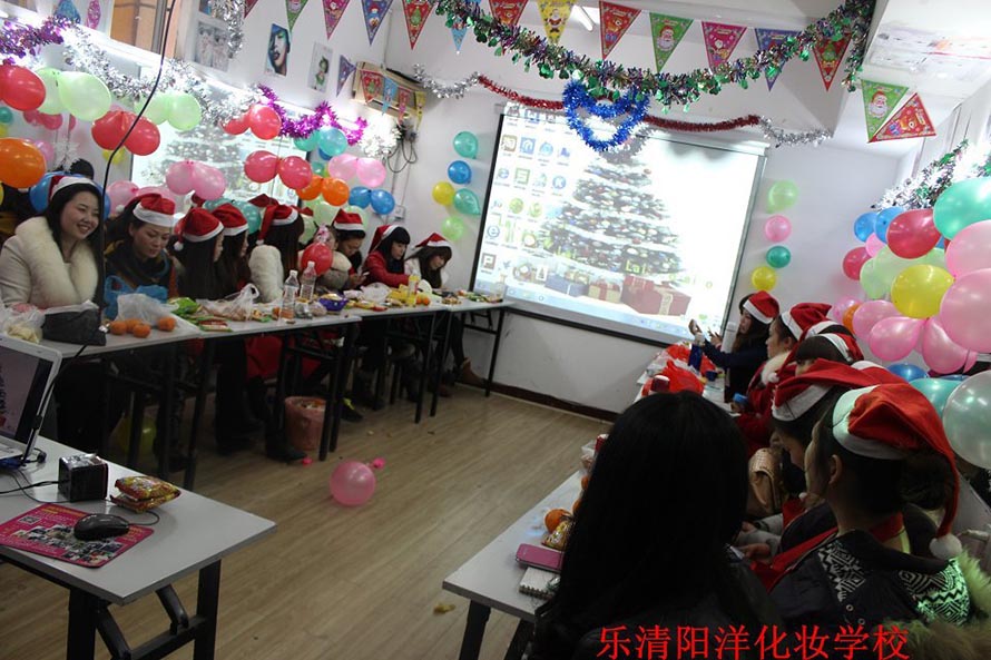 昨天的圣誕節(jié)氣氛很好,學校很多學生都都回老家了,原因是因為很多都是外地的,都提早回家了,這是小班部分學生跟老師一起簡單的設計了下布置,那幾天大家都在外面實習,也沒有過多的時間來布置。 雖然很簡單,但是大家都樂個不停,一直嘻嘻哈哈太開心啦!?。?!她們平時學習很用功,出去實習經常客人表演化的好,所以在圣誕節(jié)這天大家都放松心情的玩,很難忘的一個簡單圣誕節(jié)派對,l老師們開心,同學們開心!還有樂清二小的小朋友們來給合唱了一首明天會更好呢!謝謝這些可愛的小朋友們。 祝福陽洋時尚化妝培訓學校的老師們!同學們大家明天都會更好!現在來看看精彩花絮的一些照片吧!