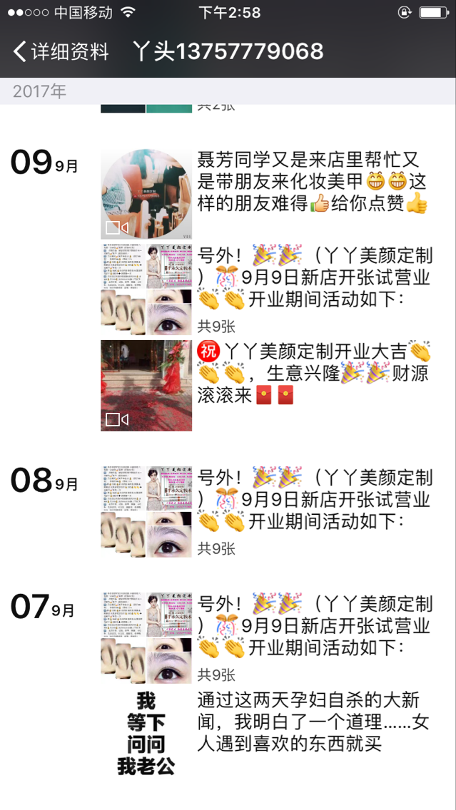 這是我自己的小店:丫丫美顏定制“ 我很喜歡這所學(xué)校,喜歡學(xué)校里的每一個(gè)女孩子,因?yàn)樵谒麄兩砩衔铱匆?jiàn)了一個(gè)現(xiàn)代女性愛(ài)學(xué)習(xí),渴望知識(shí),不斷拼搏向上的精神,值得我敬佩的不屈的朝氣蓬勃的生命,在日常學(xué)校的課堂中,陳老師認(rèn)真負(fù)責(zé)的教學(xué)態(tài)度讓我受益匪淺,從一開(kāi)始講解紋繡理論的知識(shí),再到老師手把手的教我們?cè)诰毩?xí)皮上操作,如何設(shè)計(jì)適合客戶的眉型,眉眼唇色乳的調(diào)配等等。 我求知若渴也常常向老師討教不懂的問(wèn)題,老師都很耐心的回答,以后的成長(zhǎng)路中還有許許多多讓老師指點(diǎn)的地方,還麻煩老師不吝賜教。 畢業(yè)之際。屬于我自己的“丫丫美顏定制”開(kāi)業(yè)啦! 里面經(jīng)營(yíng):化妝,美甲,紋繡,,私人訂制,歡迎你們前來(lái)光顧哦!現(xiàn)在開(kāi)業(yè)期間還有充值優(yōu)惠哦!